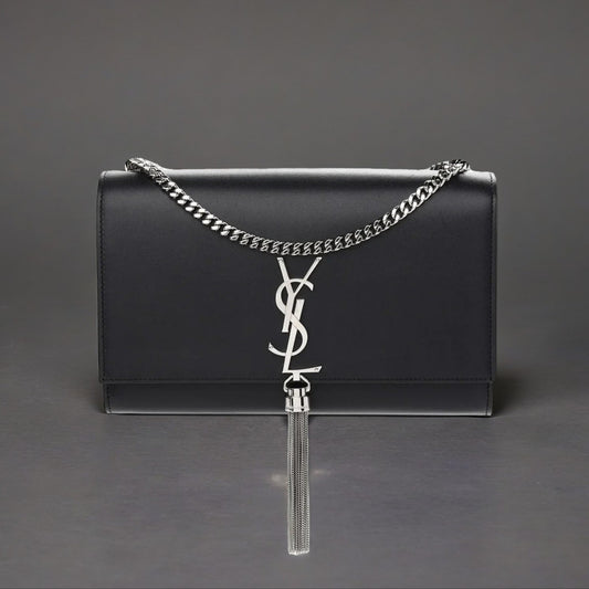 Smooth Calfskin Medium Classic Monogram Kate Tassel Satchel Black