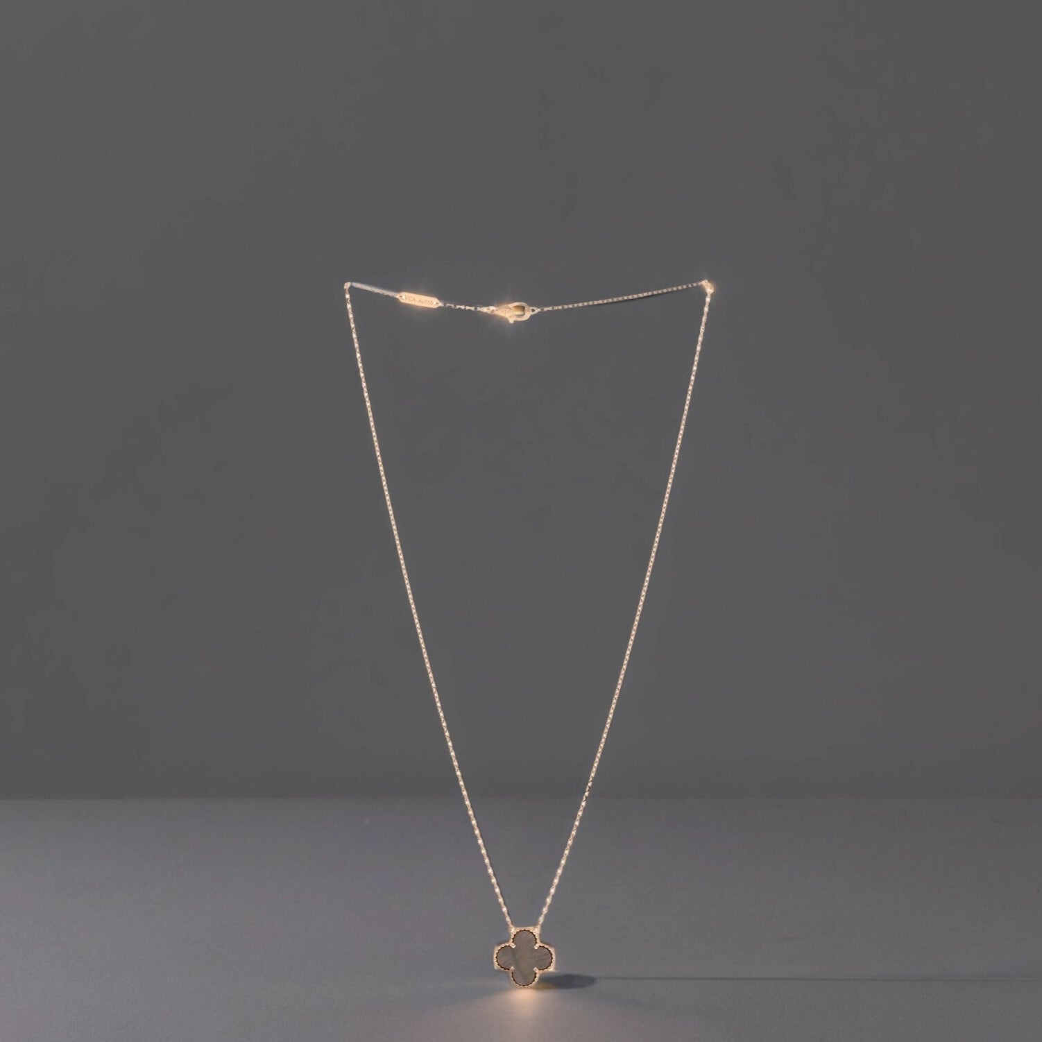 18K Rose Gold Gray Mother of Pearl Vintage Alhambra Pendant Necklace