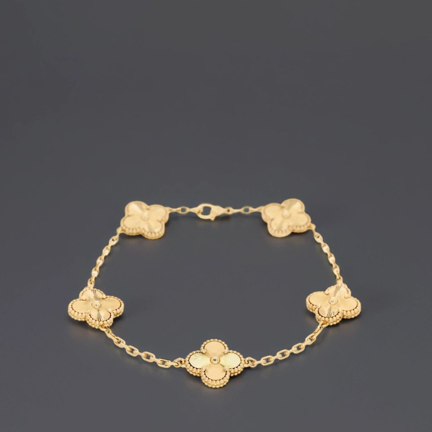 18K Yellow Gold 5 Motifs Guilloche Vintage Alhambra Bracelet
