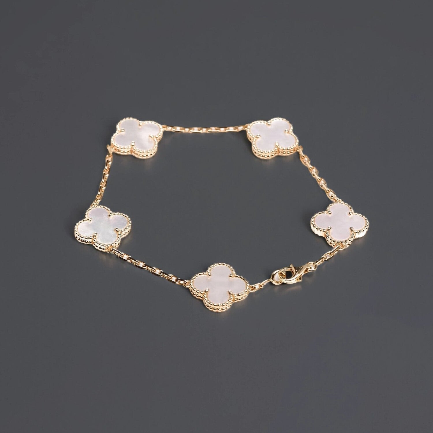 18K Yellow Gold Mother of Pearl 5 Motifs Vintage Alhambra Bracelet