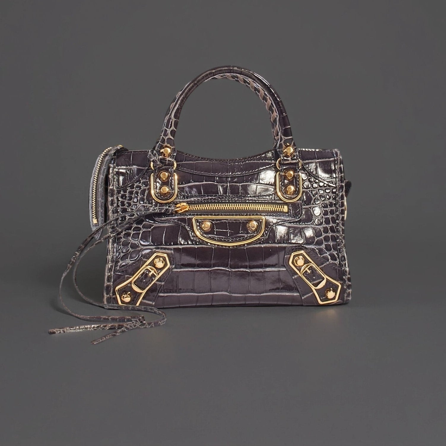 BALENCIAGA CROC EMBOSSED MOTOCROSS METALLIC EDGE NANO CITY BAG