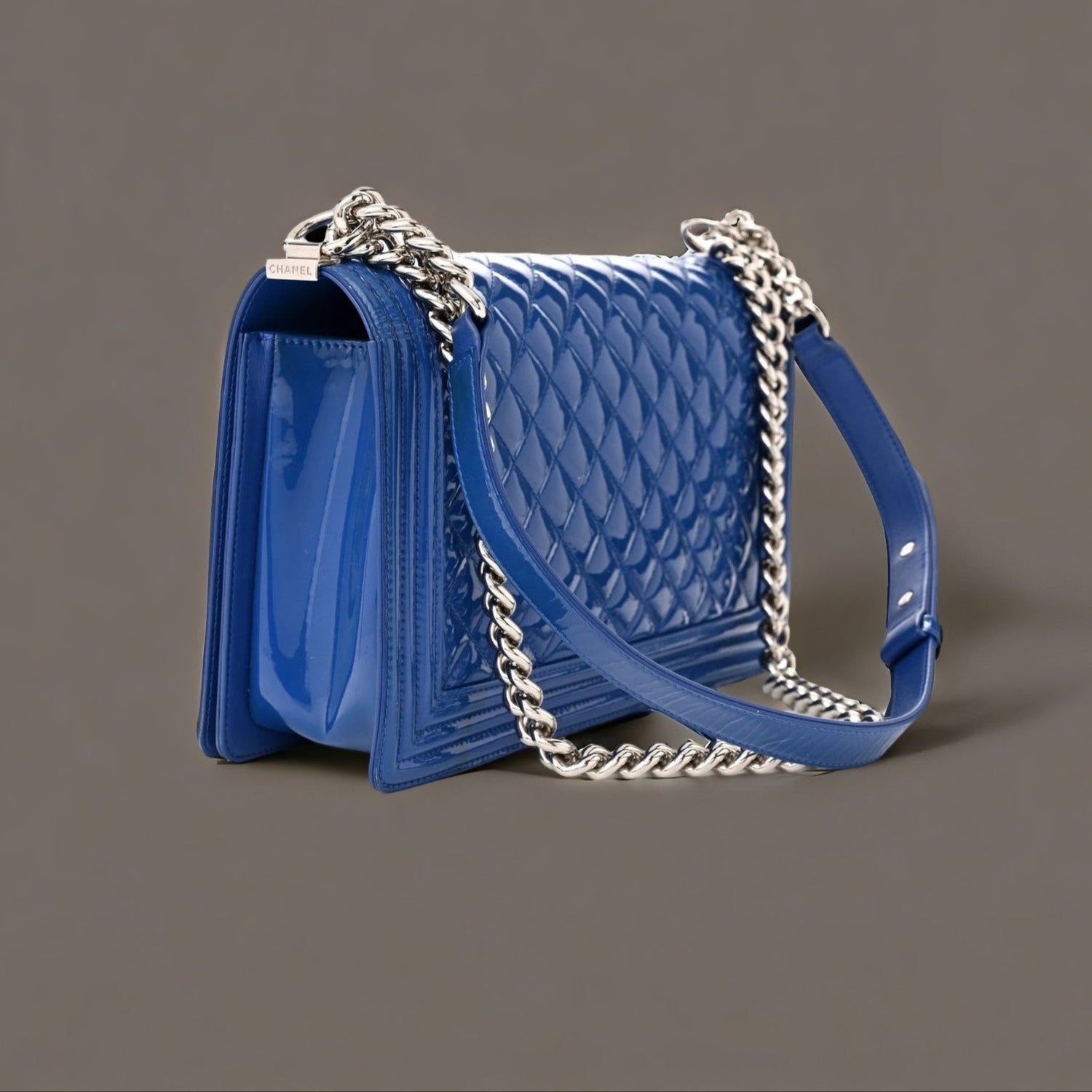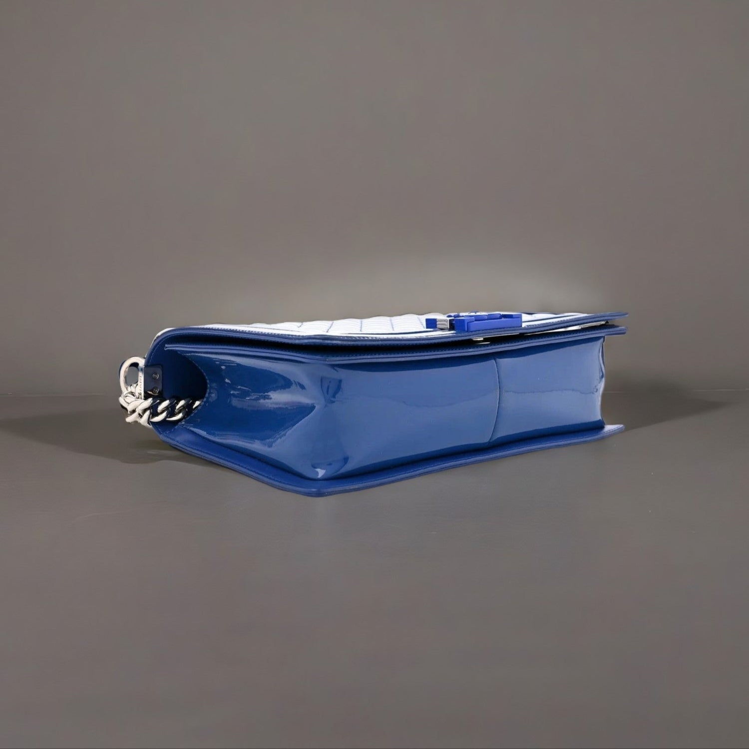 Blue Quilted Patent Leather New Medium Plexiglass Boy Bag