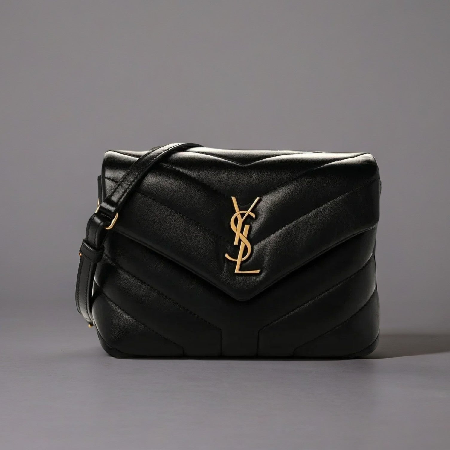Calfskin Y Quilted Monogram Toy Loulou Crossbody Bag Black