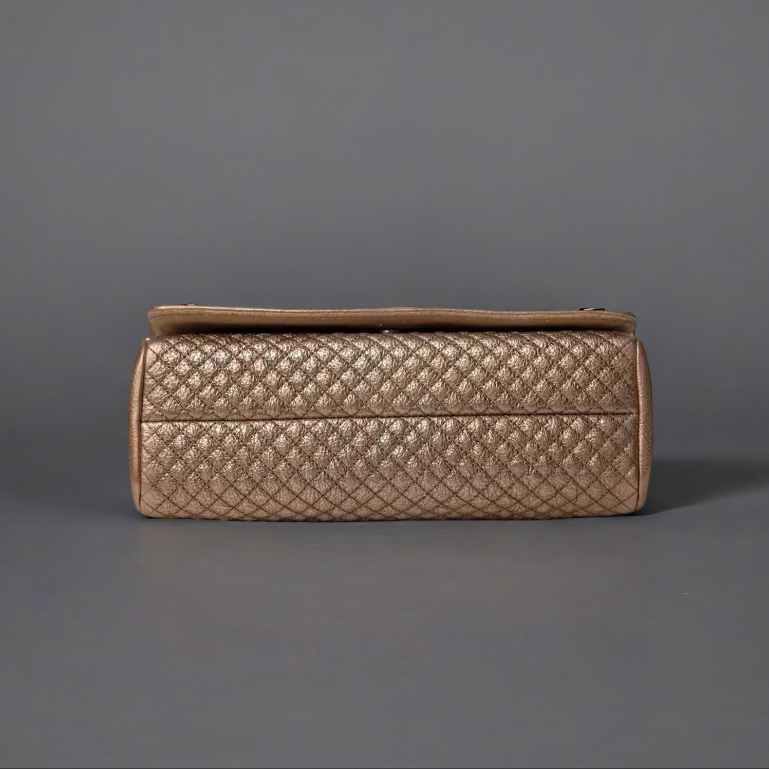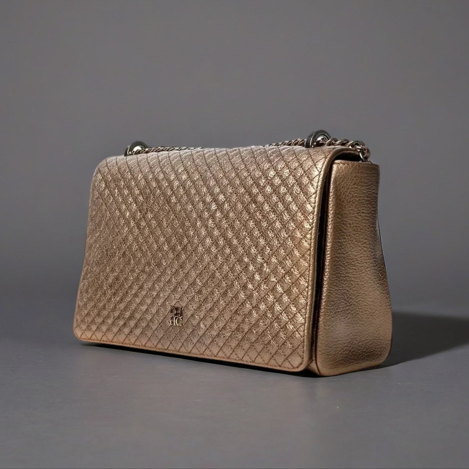 CAROLINA HERRERA GOLD QUILTED LEATHER FLAP CHAIN SHOULDER BAG