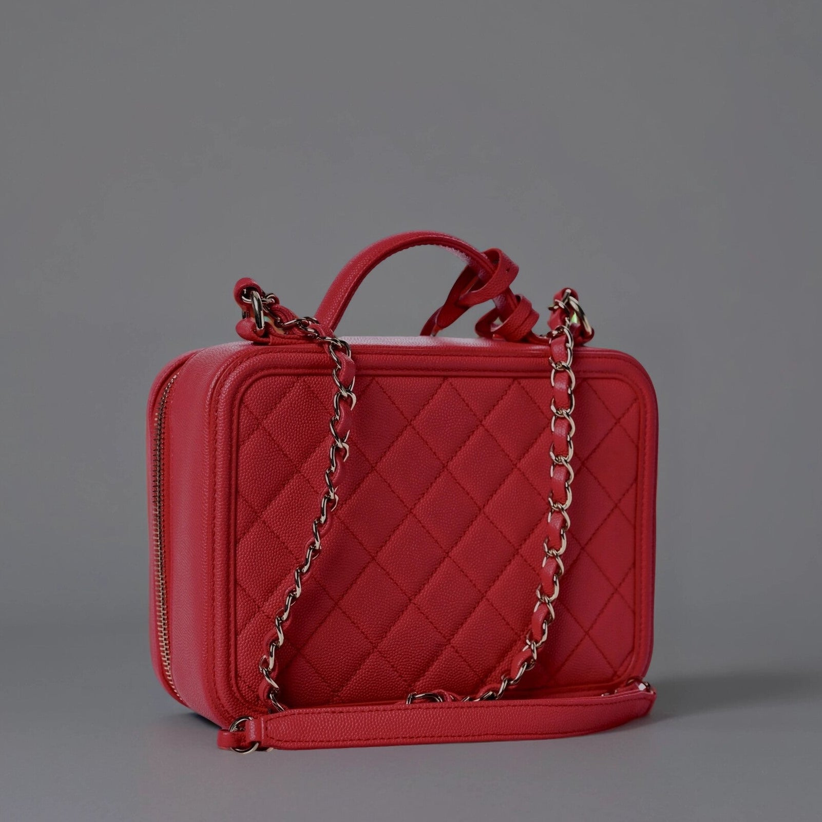 Caviar Quilted Medium CC Filigree Vanity Case Red