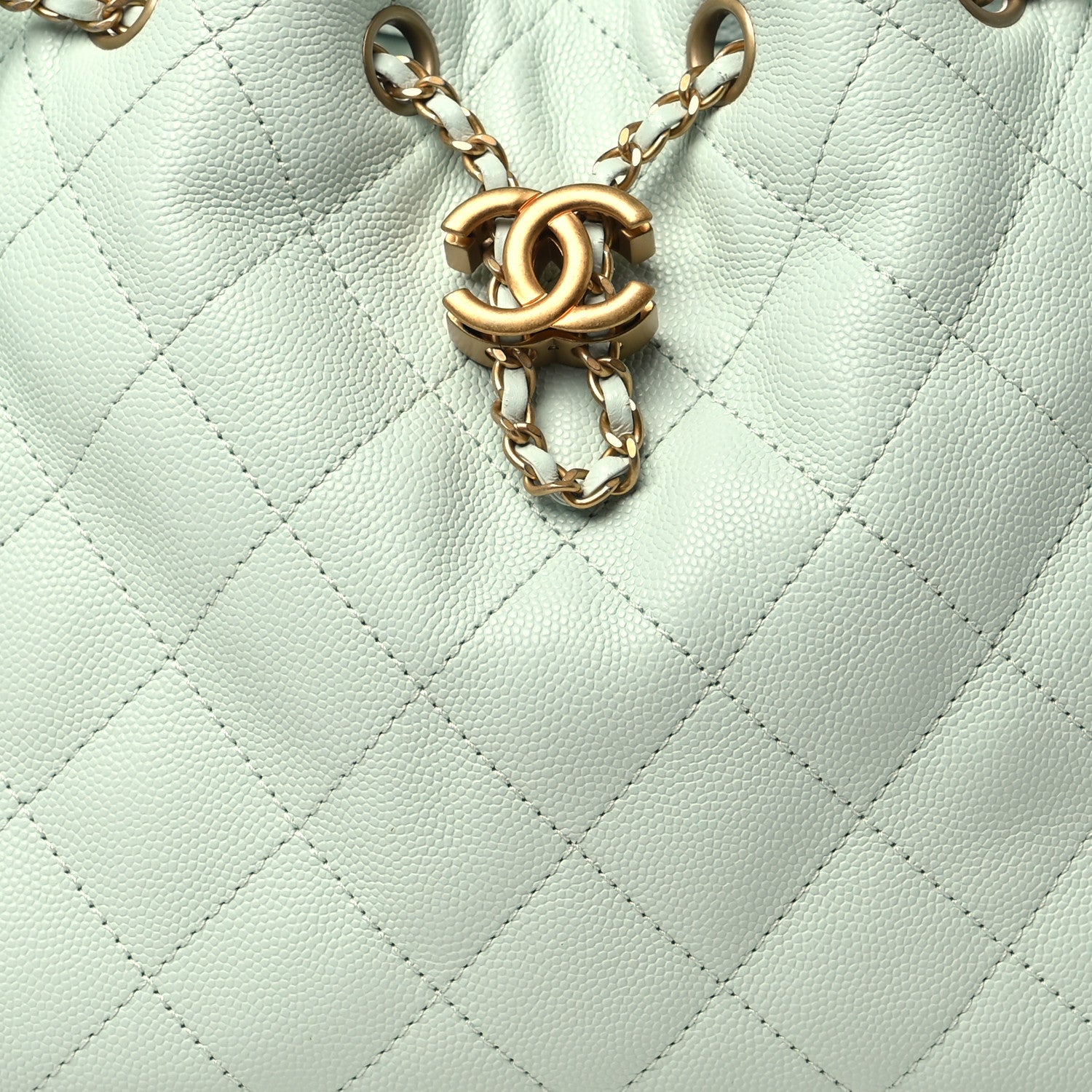 This is an authentic CHANEL Caviar Quilted Small Chanel 25 Handbag in Light green. This chic shoulder bag is crafted of caviar calfskin leather in light green. It features a gold chain leather shoulder strap, a two side pockets, and gold hardware. The top opens to a fabric interior with a patch pocket.