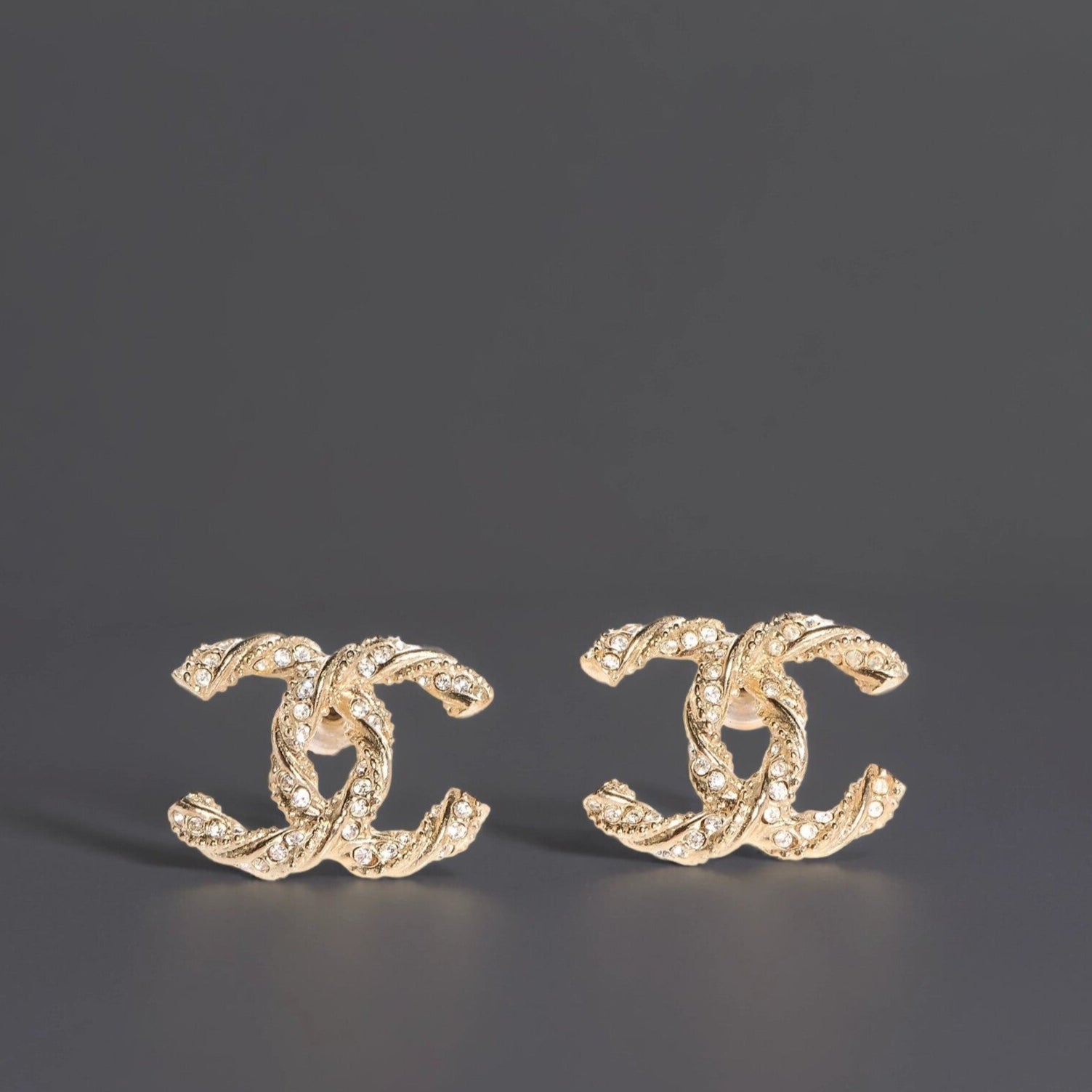 Crystal Twisted CC Earrings Gold