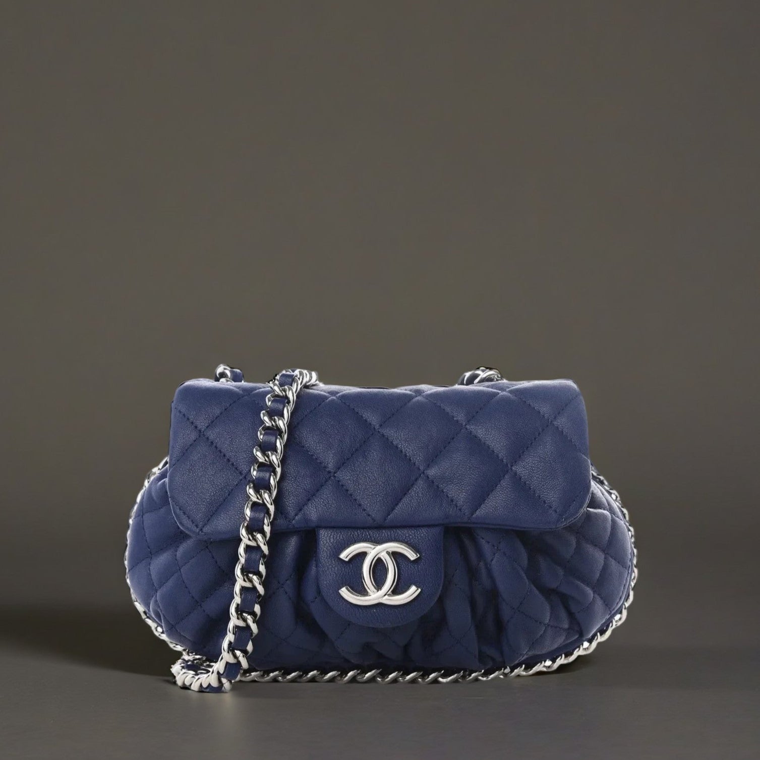 This Hampton bag from Chanel is brimming with signature details which makes it as iconic as the other styles from the label. It is crafted from electric blue-colored leather and bears the quilted pattern all over the exterior. It is equipped with a small front flap which carries a matching CC logo and it opens to a fabric-lined interior that houses slip pockets. This beauty of a bag is held by the characteristic interweaved shoulder strap. This bag is complete with silver-tone hardware.