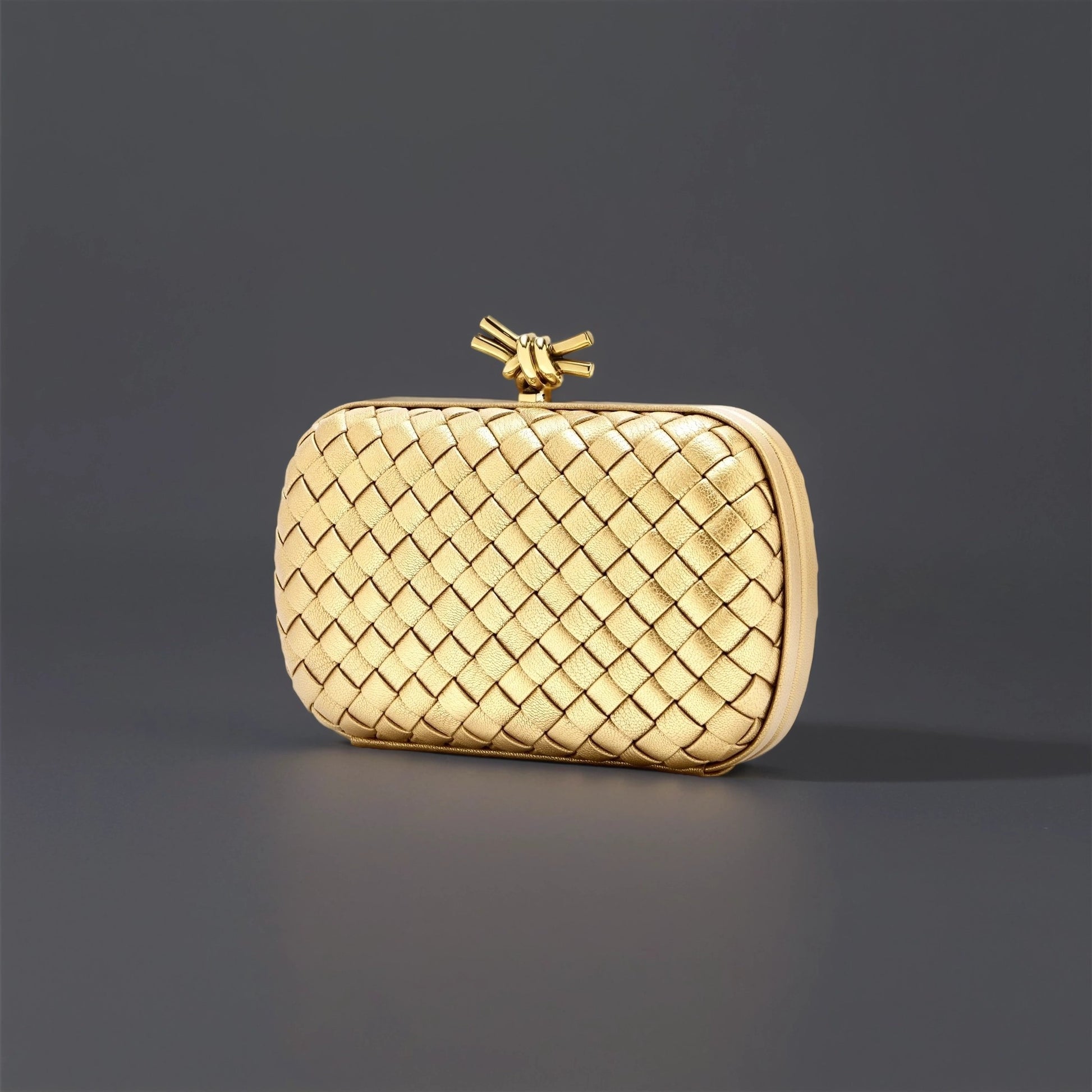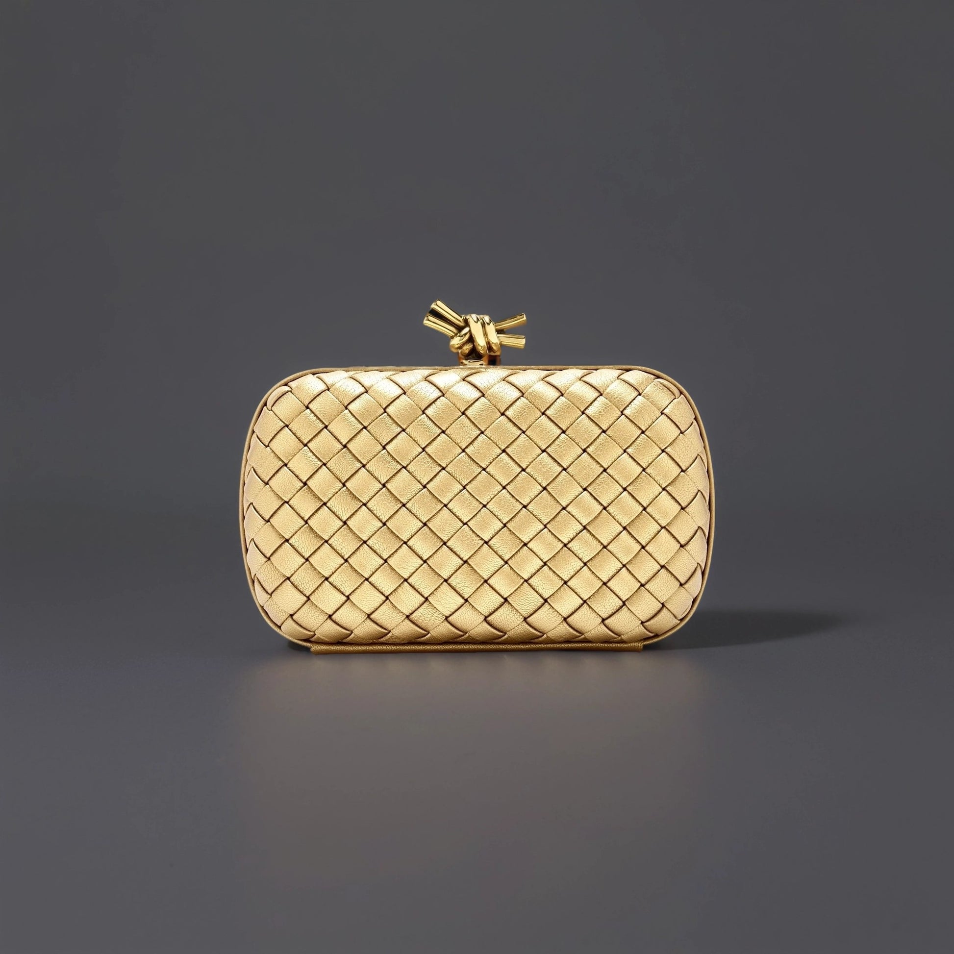 Metallic Intrecciato Chain Knot Clutch Gold