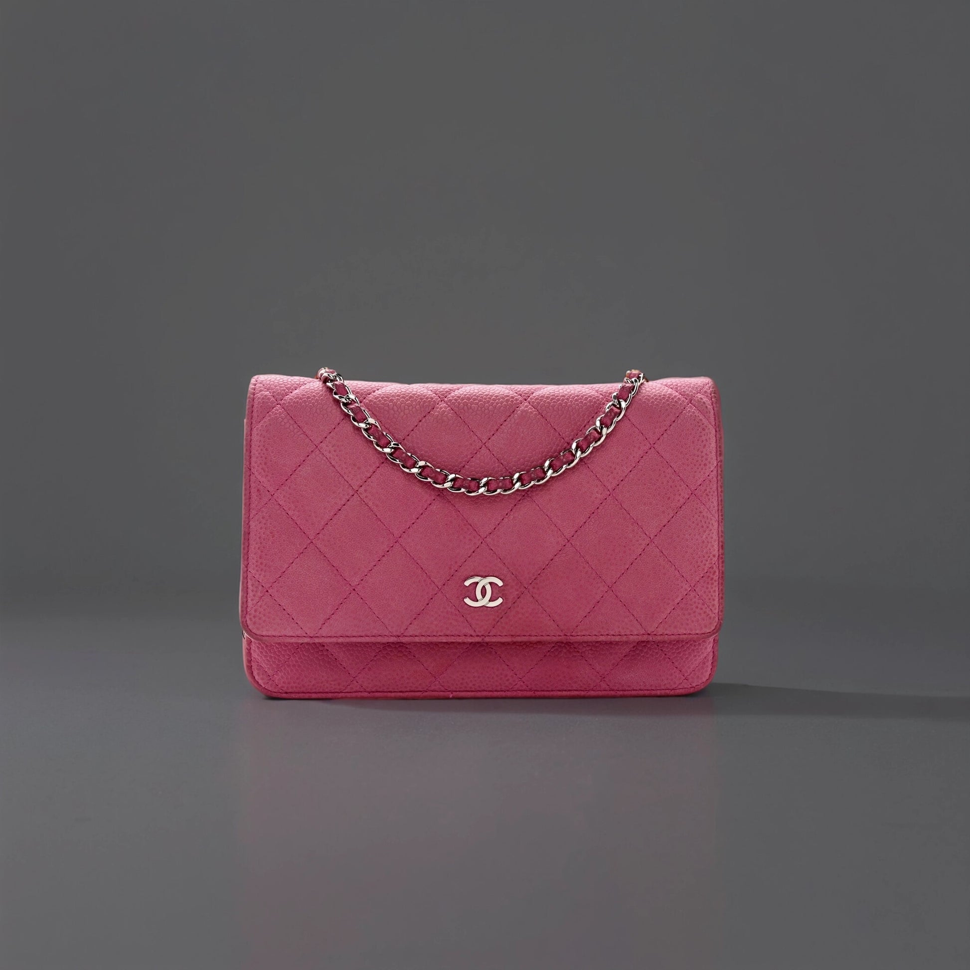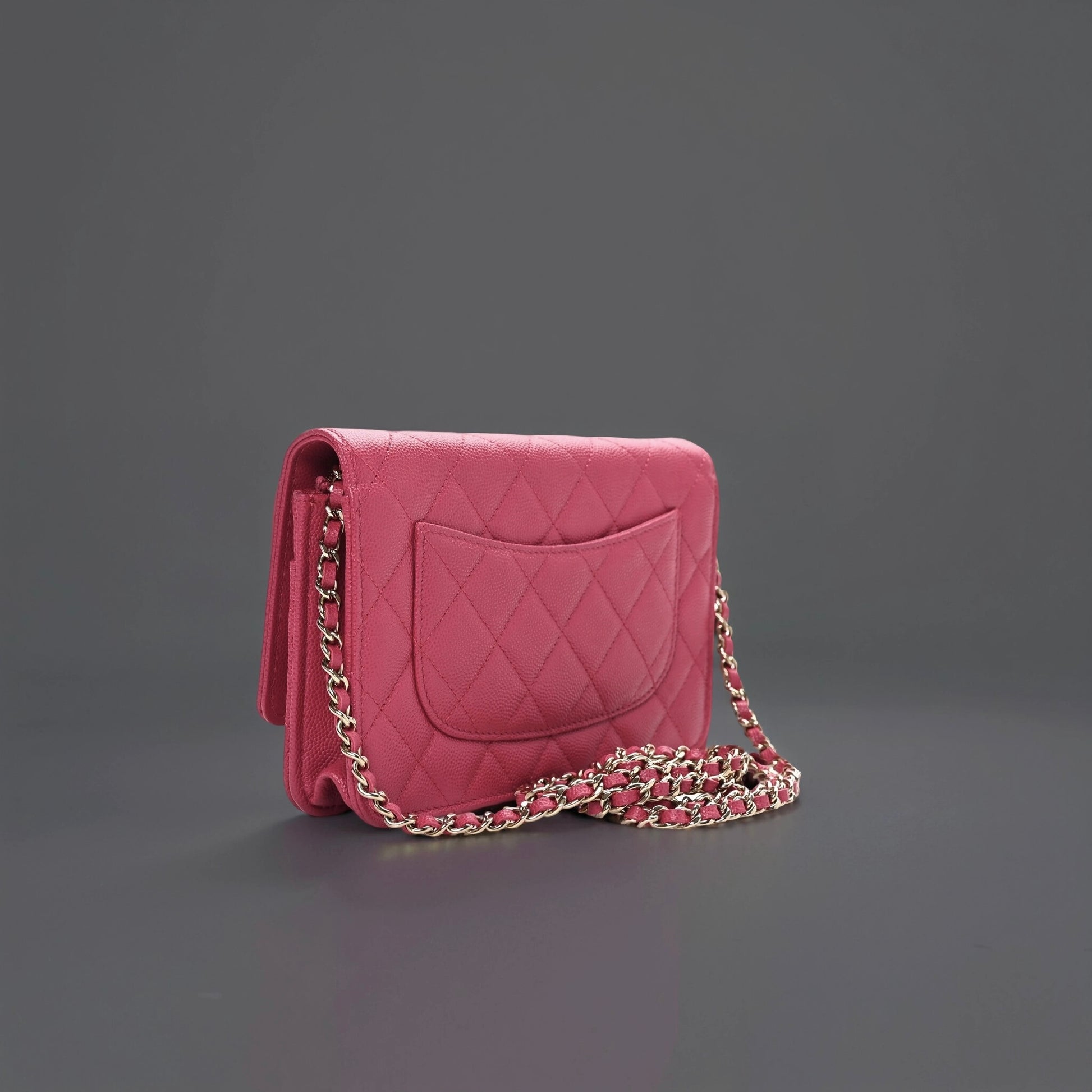 Iridescent Caviar Quilted Wallet on Chain WOC Pink