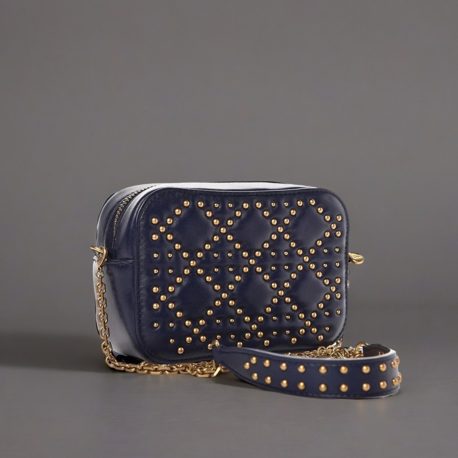 Lambskin Cannage Studded Lady Dior Camera Case Pouch Blue