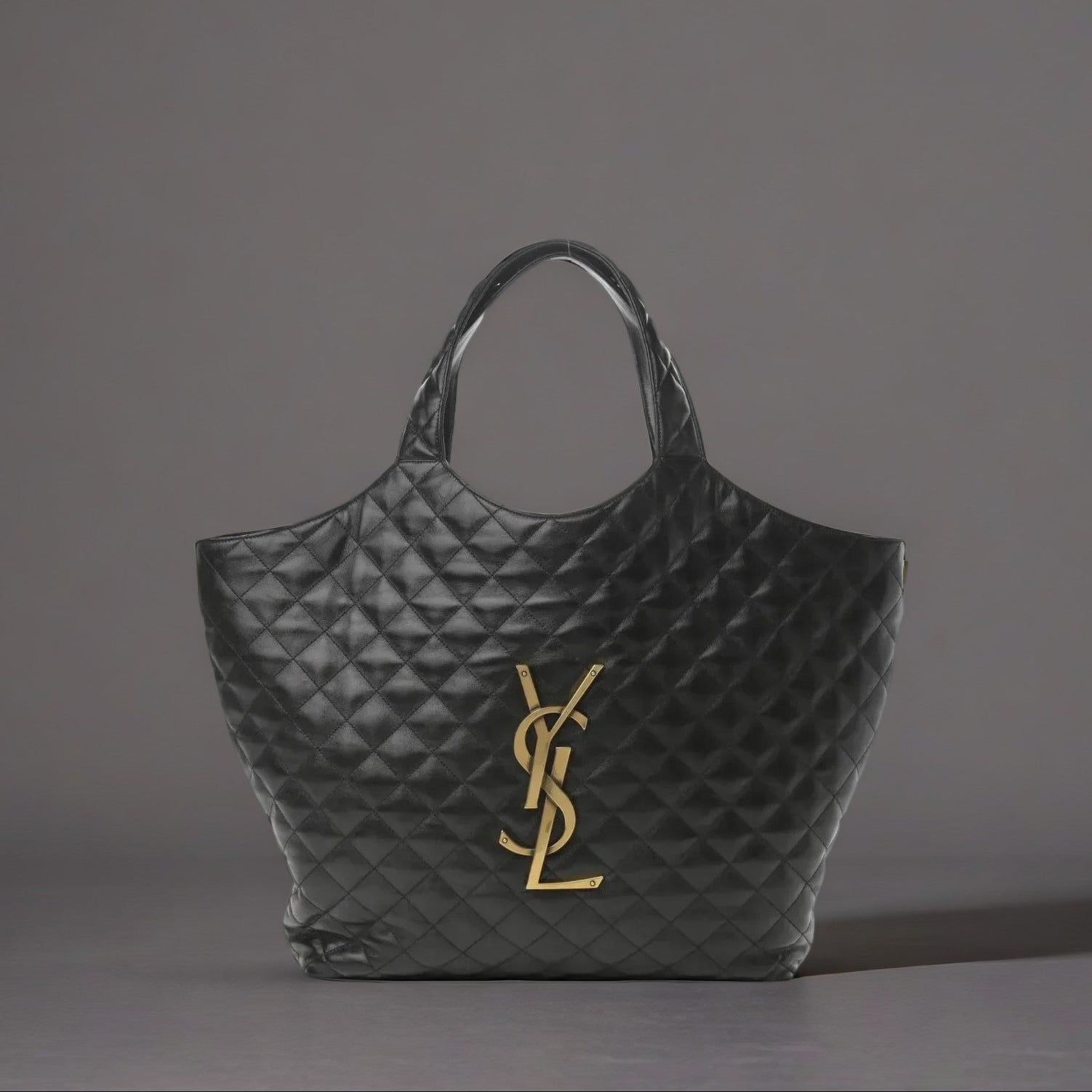 Lambskin Quilted Maxi Icare Shopping Tote Black