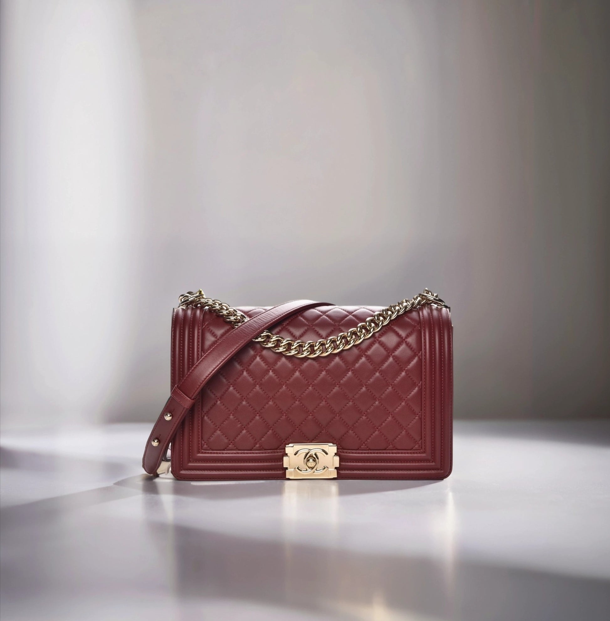 Lambskin Quilted New Medium Boy Flap Dark Red