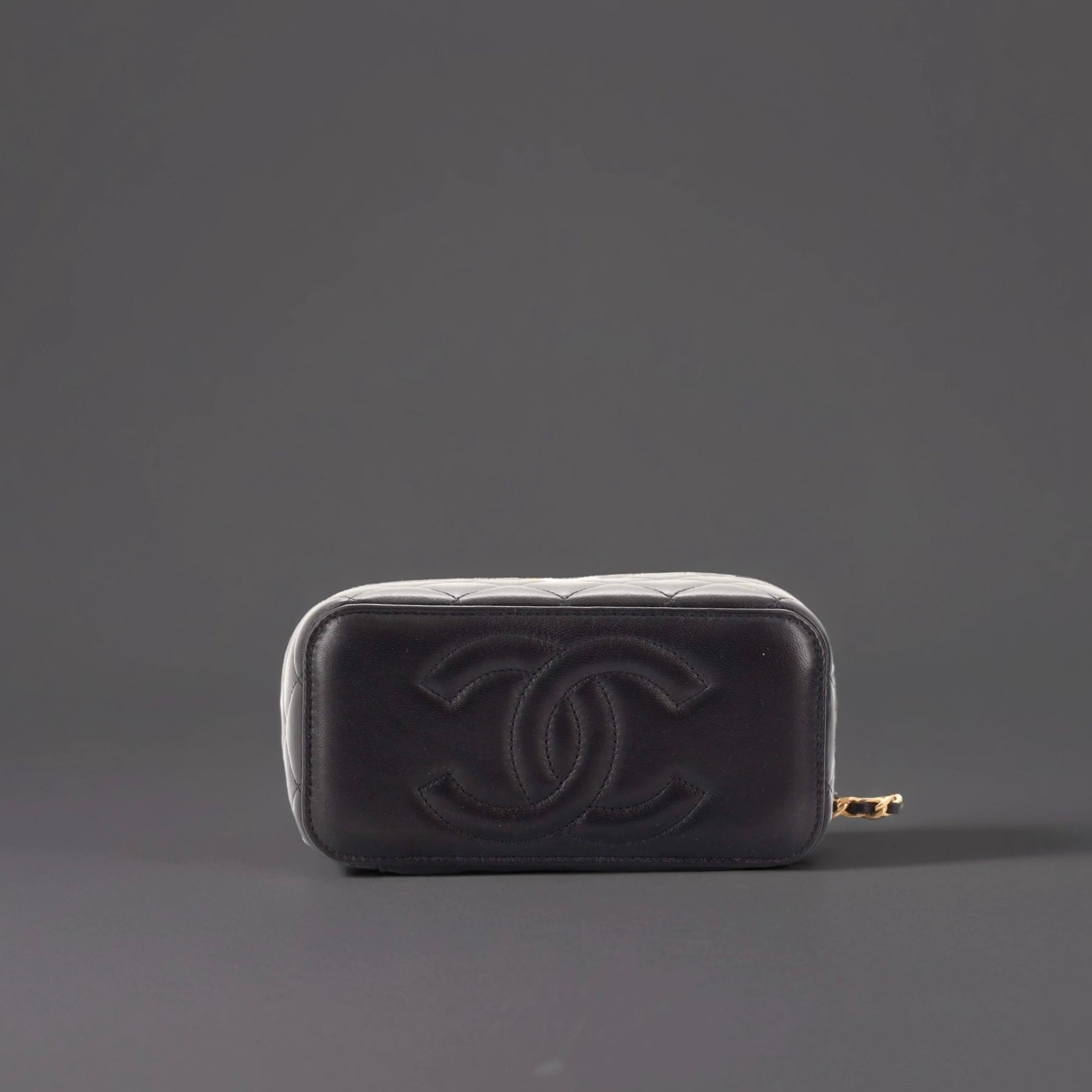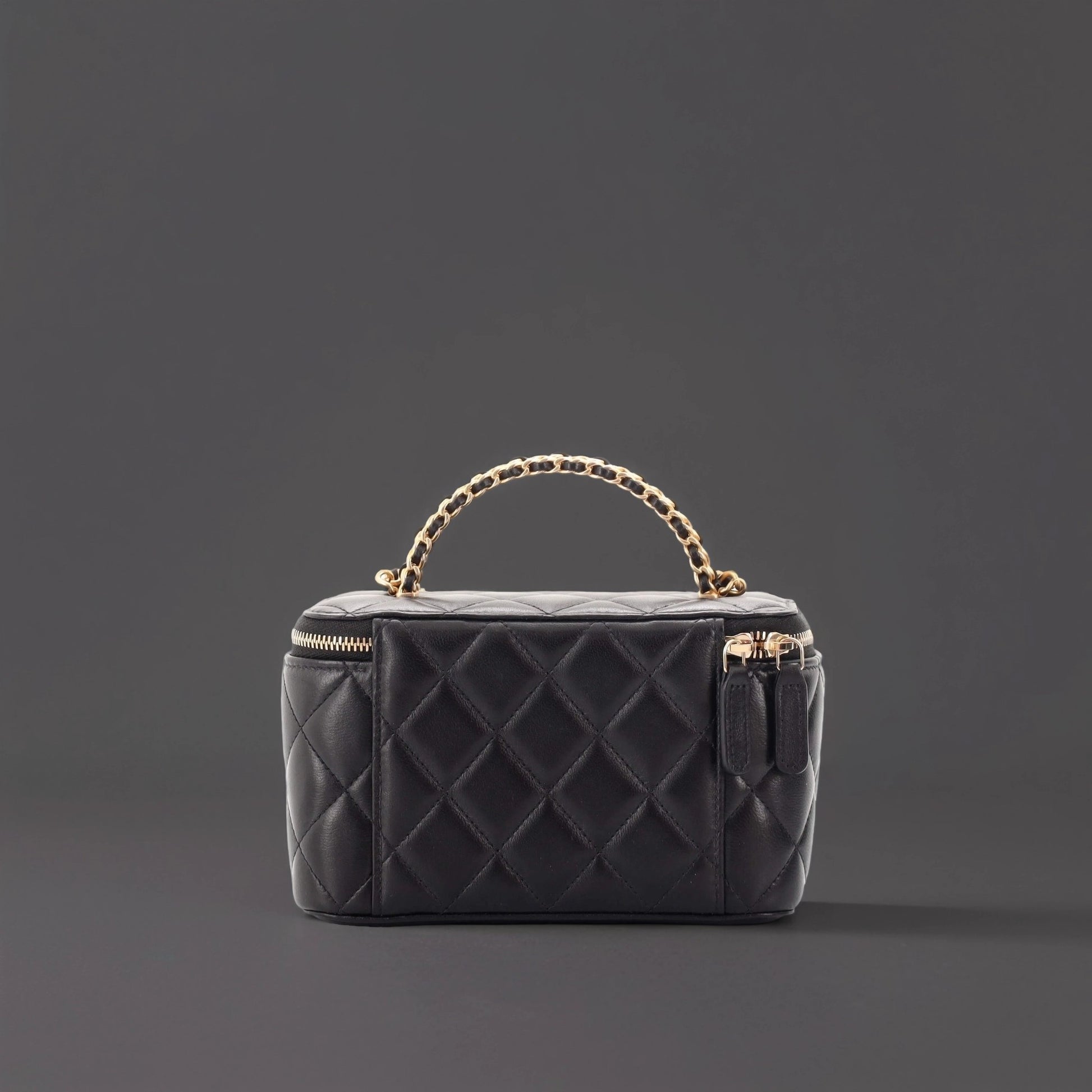 Lambskin Quilted Small Top Handle Vanity Case With Chain Black