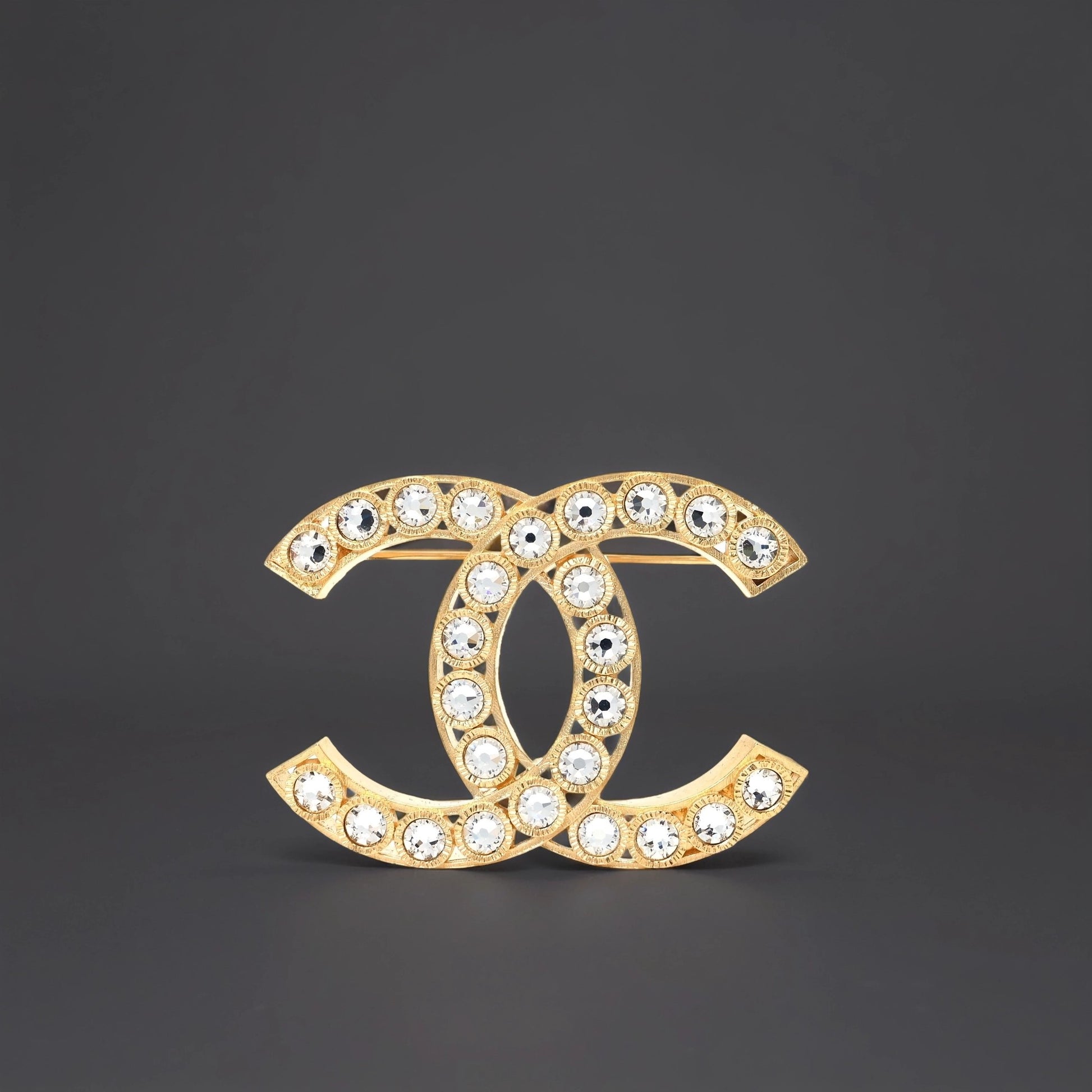 Metal Crystal CC Brooch Gold