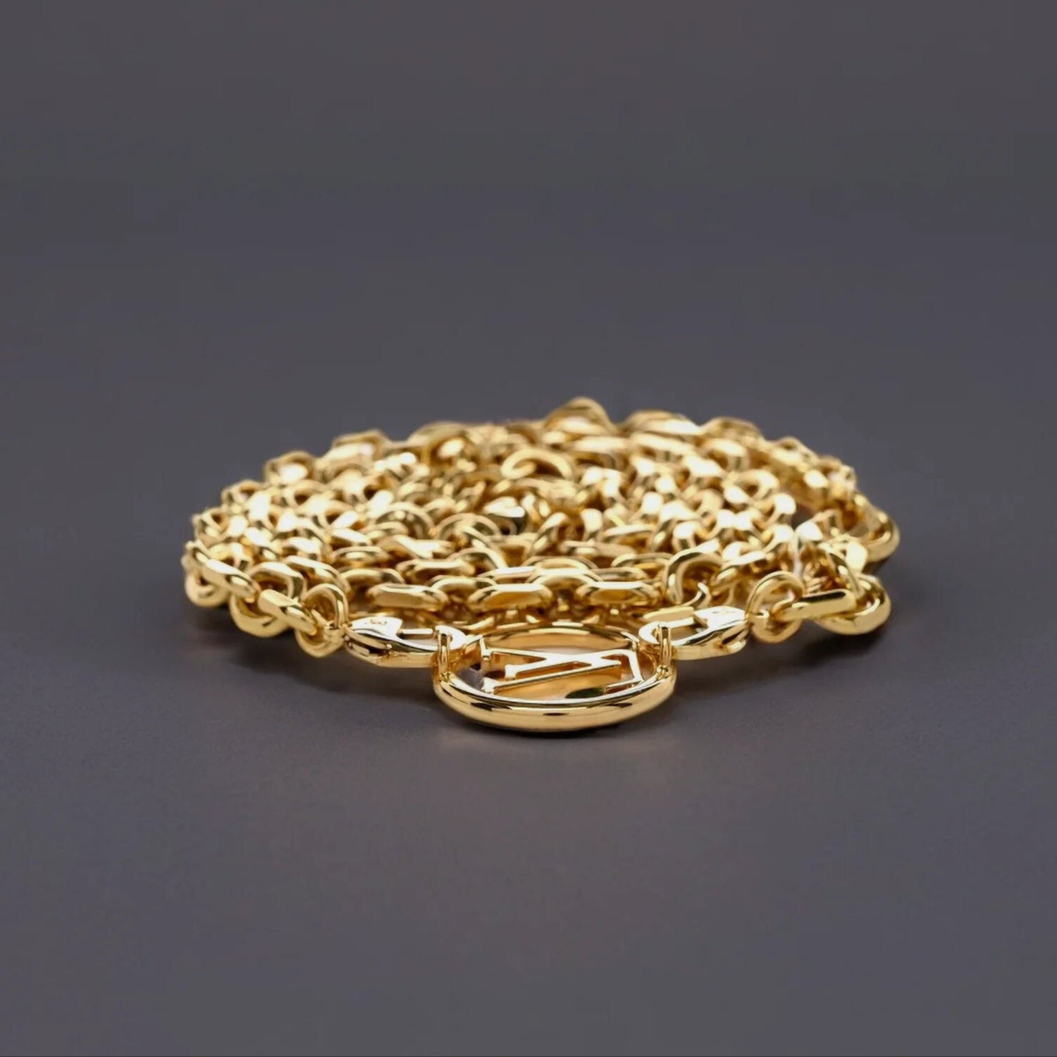 This is an authentic LOUIS VUITTON Metal Pochette Coussin Chain Strap in Gold. This convenient chain strap is crafted of polished brass links with clasps.