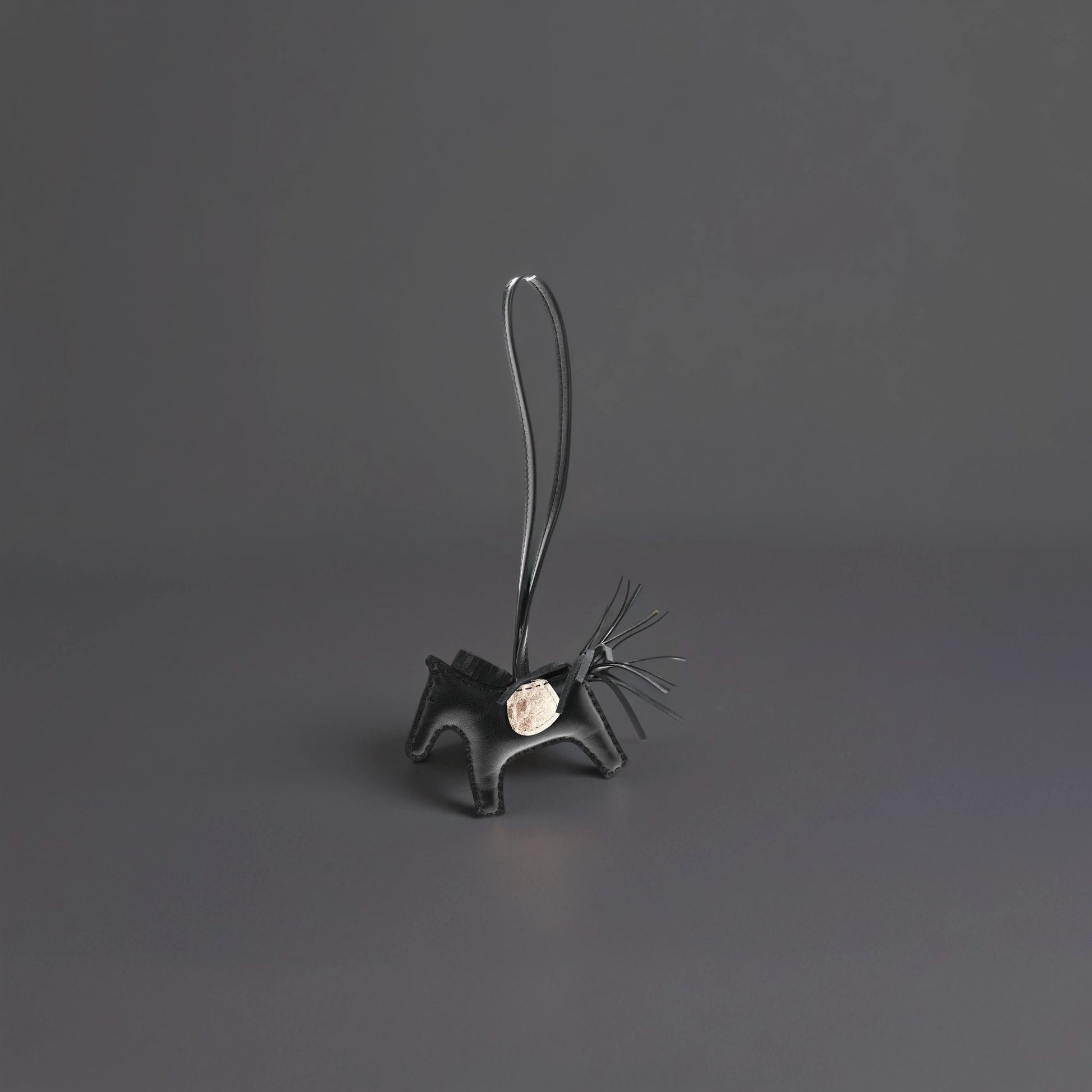 This is an authentic HERMES Milo Lambskin Matte Niloticus Crocodile Himalaya Touch Grigri Rodeo Horse Bag Charm PM in Black and White. This very charming bag charm is crafted of stuffed black lambskin leather and freshwater niloticus crocodile skin with fringe on a leather strap.