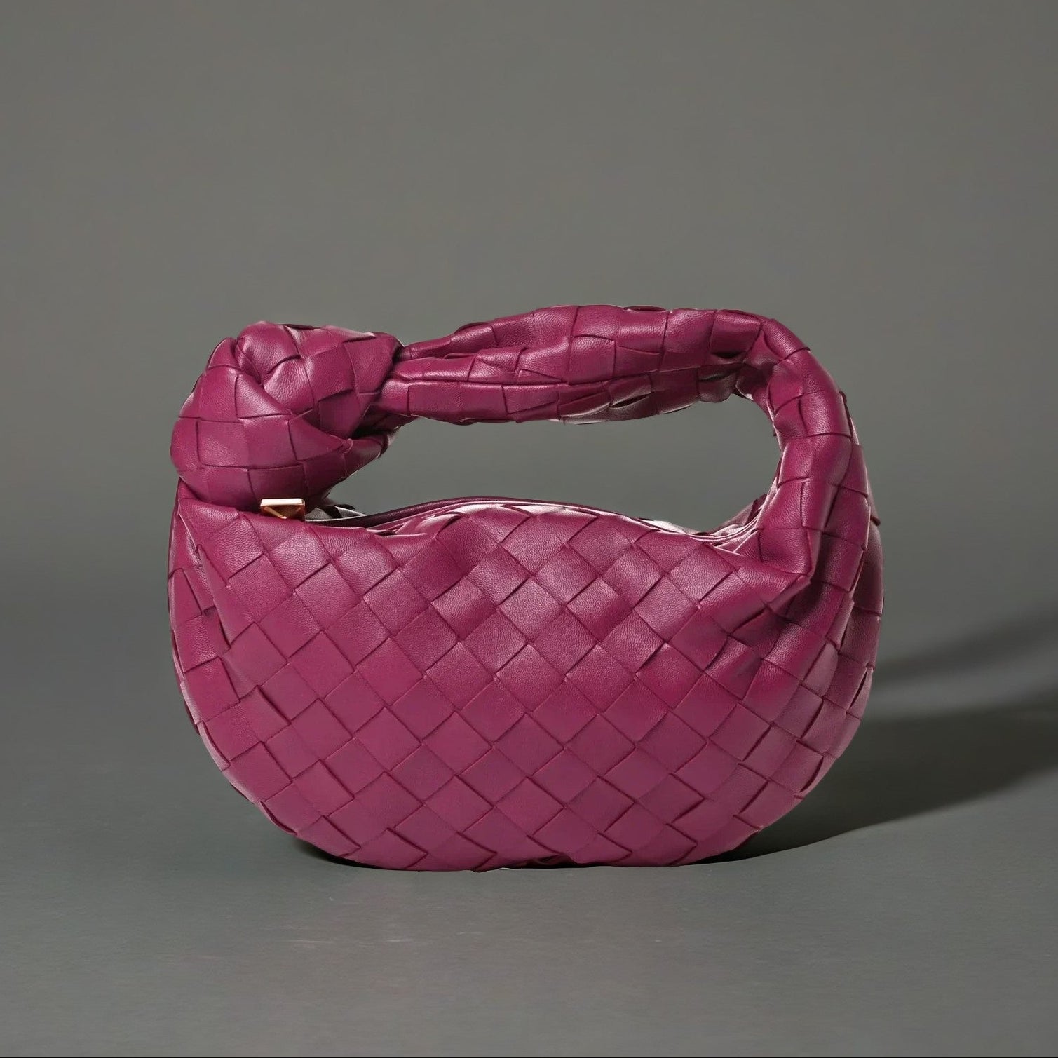 This is an authentic BOTTEGA VENETA Nappa Intrecciato Mini BV Jodie in Cinnabar. This stylish shoulder bag is beautifully crafted of soft woven lambskin leather in purple. The shoulder bag features a matching handle and a silver top zipper that opens to a compact purple leather interior.