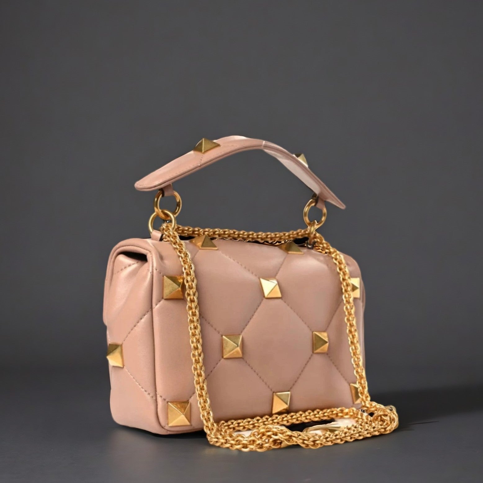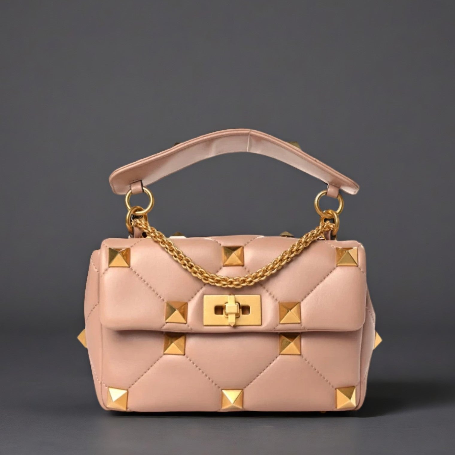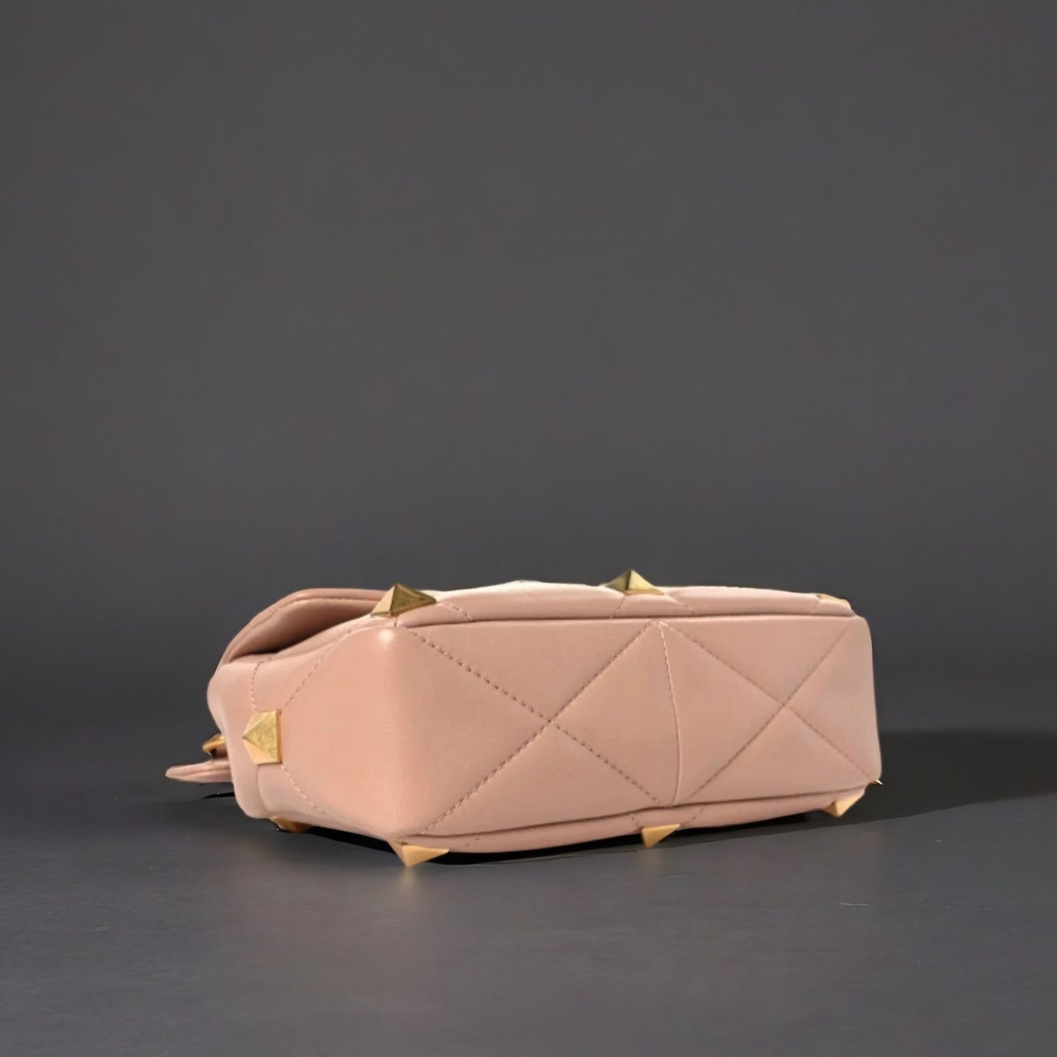 Nappa Medium Roman Stud Shoulder Bag Rose Cannelle