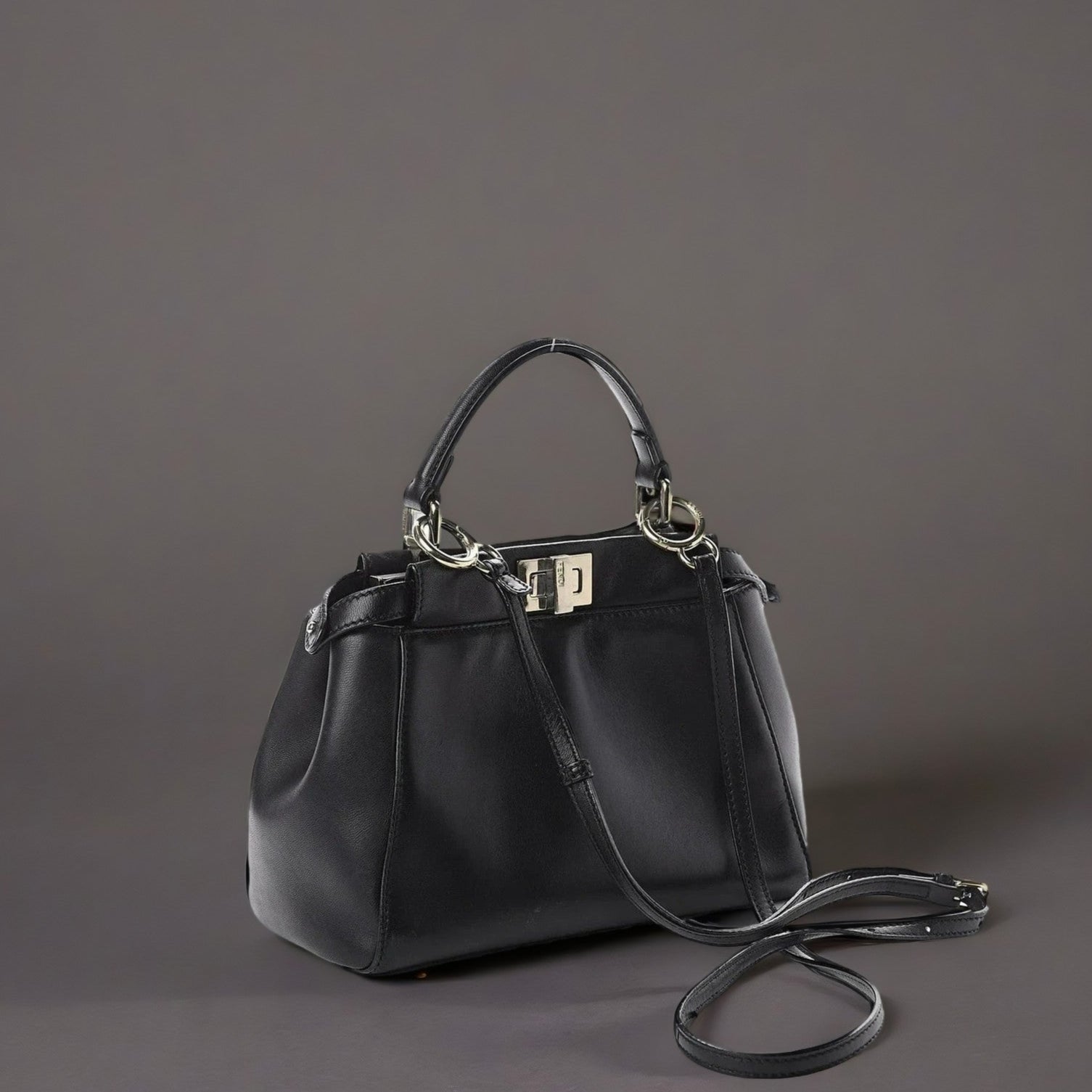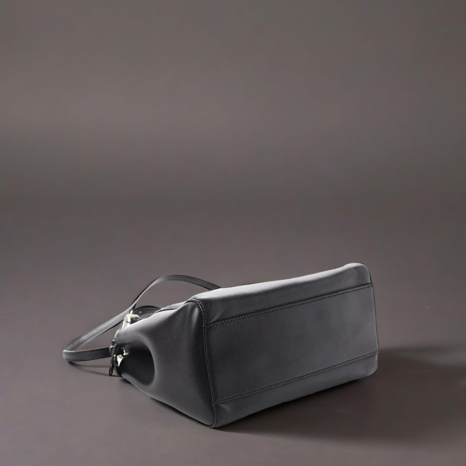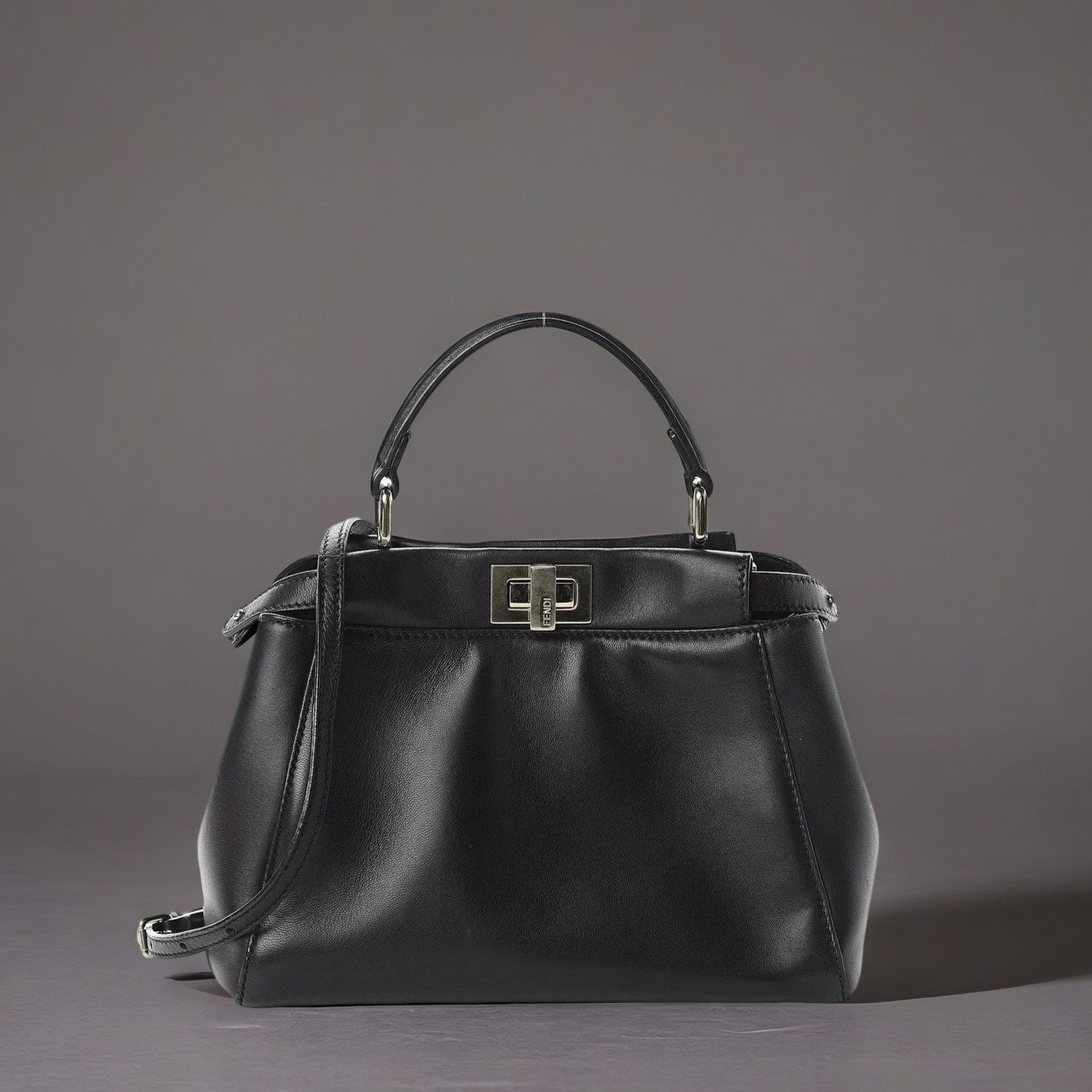This is an authentic FENDI Nappa Mini Peekaboo Iconic Satchel in Black. This stylish handbag is crafted of soft nappa leather in black. It features a leather top handle, an optional crossbody strap, and silver Fendi logo turn locks. This opens to a partitioned black leather interior with patch and zipper pockets. This is a chic mini satchel, with the iconic style of Fendi!