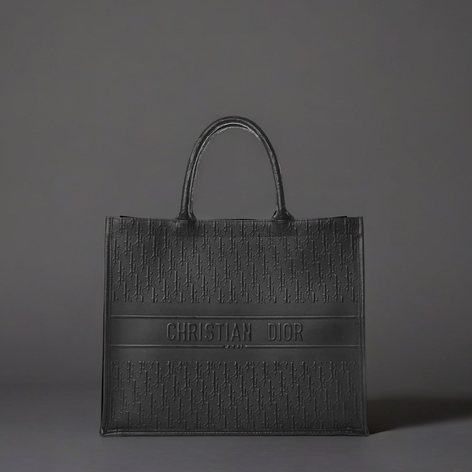 Oblique Calfskin Embossed Book Tote Black