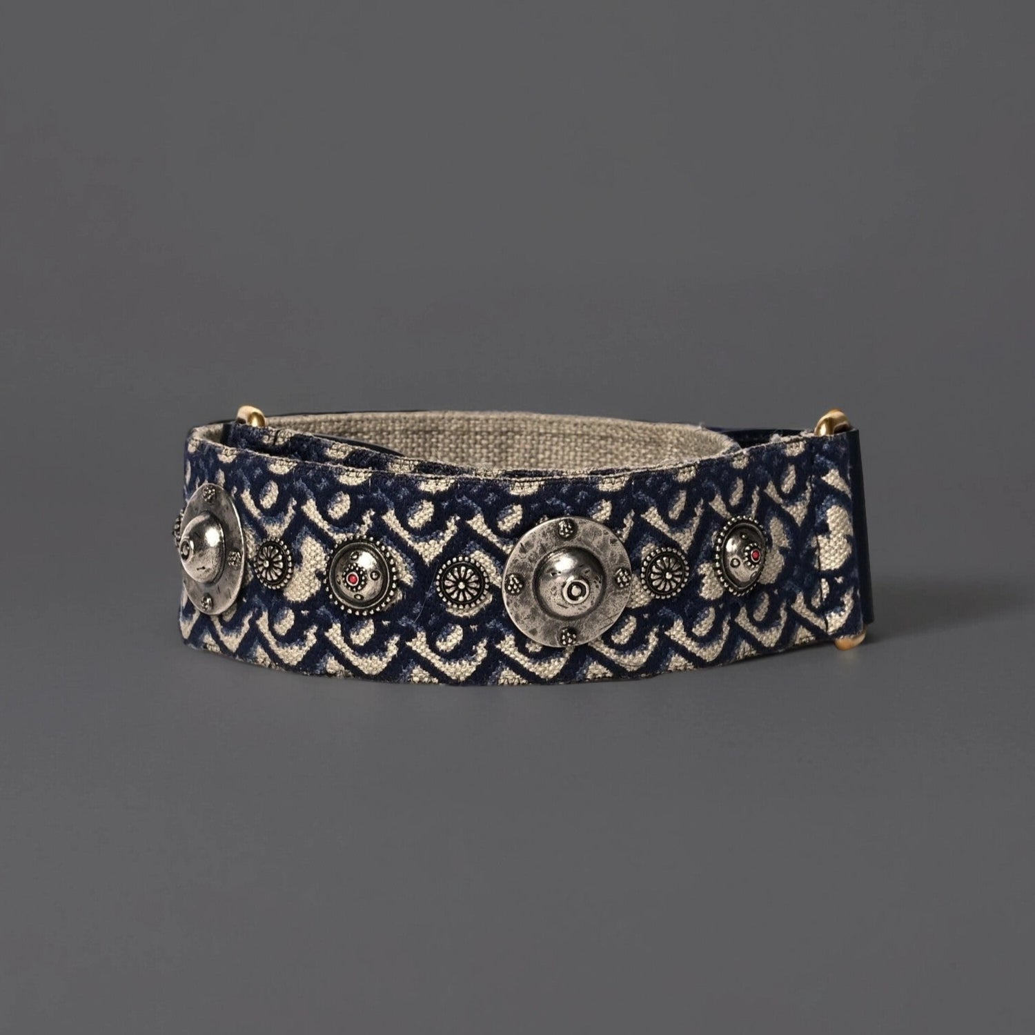 This is an authentic CHRISTIAN DIOR Oblique Studded Shoulder Strap in Blue. This elegant strap is crafted of Dior monogram-embroidered denim, with aged gold hardware and leather trim, and features silver metal medallions across the length of the strap.