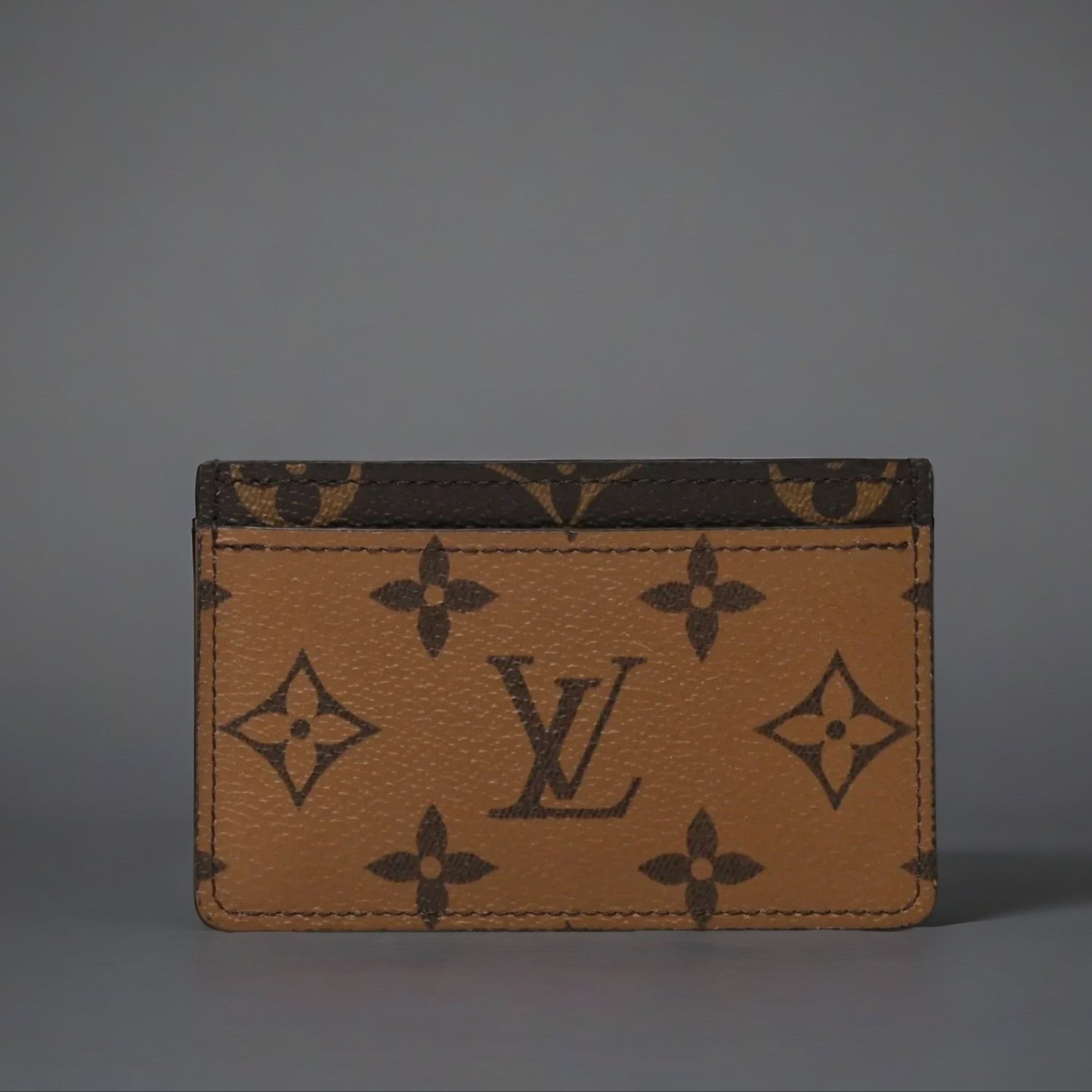 This is an authentic LOUIS VUITTON Reverse Monogram Card Holder. This stylish cardholder is crafted of classic and reverse Louis Vuitton monogram coated canvas. The cardholder has a card slot on either side of the main compartment.