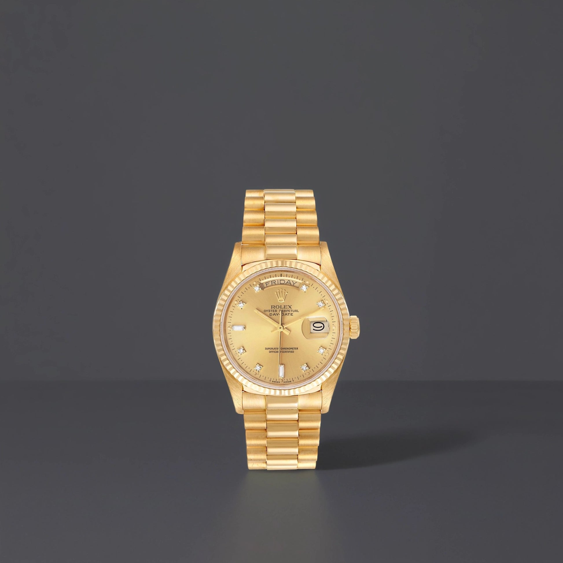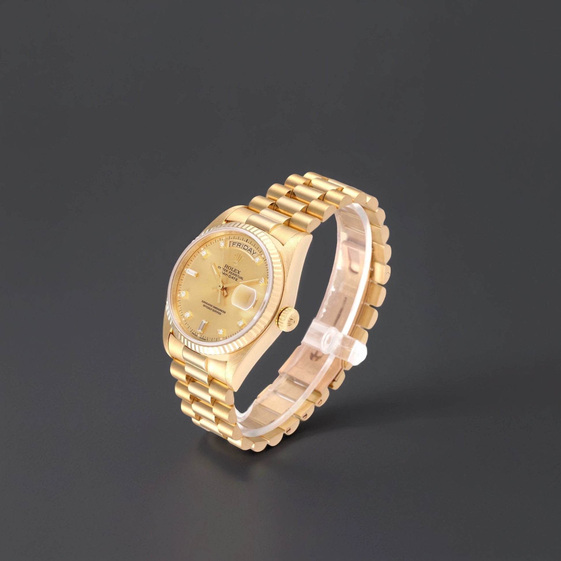Rolex 36 President Day-Date 18k Yellow Gold Diamond Watch