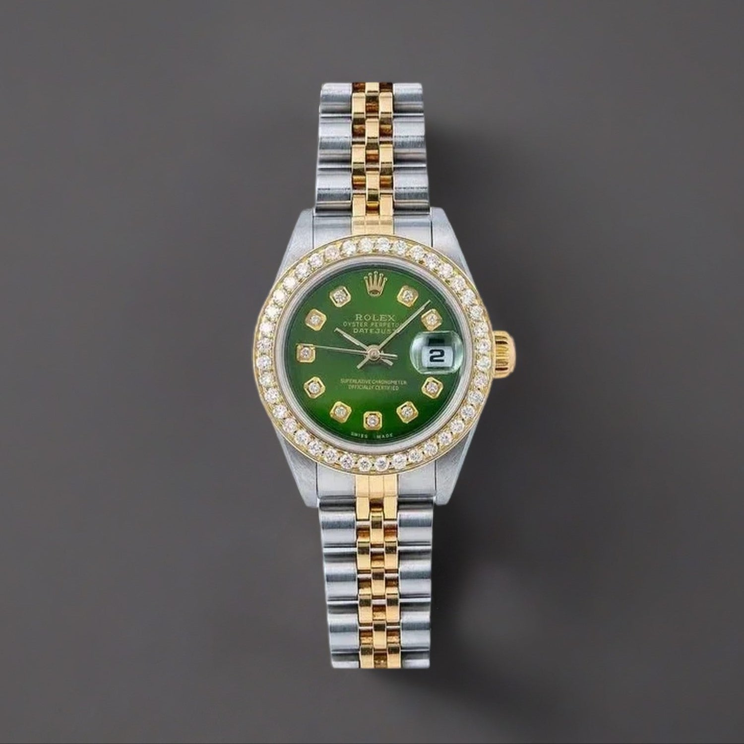Rolex Datejust 26mm Steel Yellow Gold Green Diamond Dial