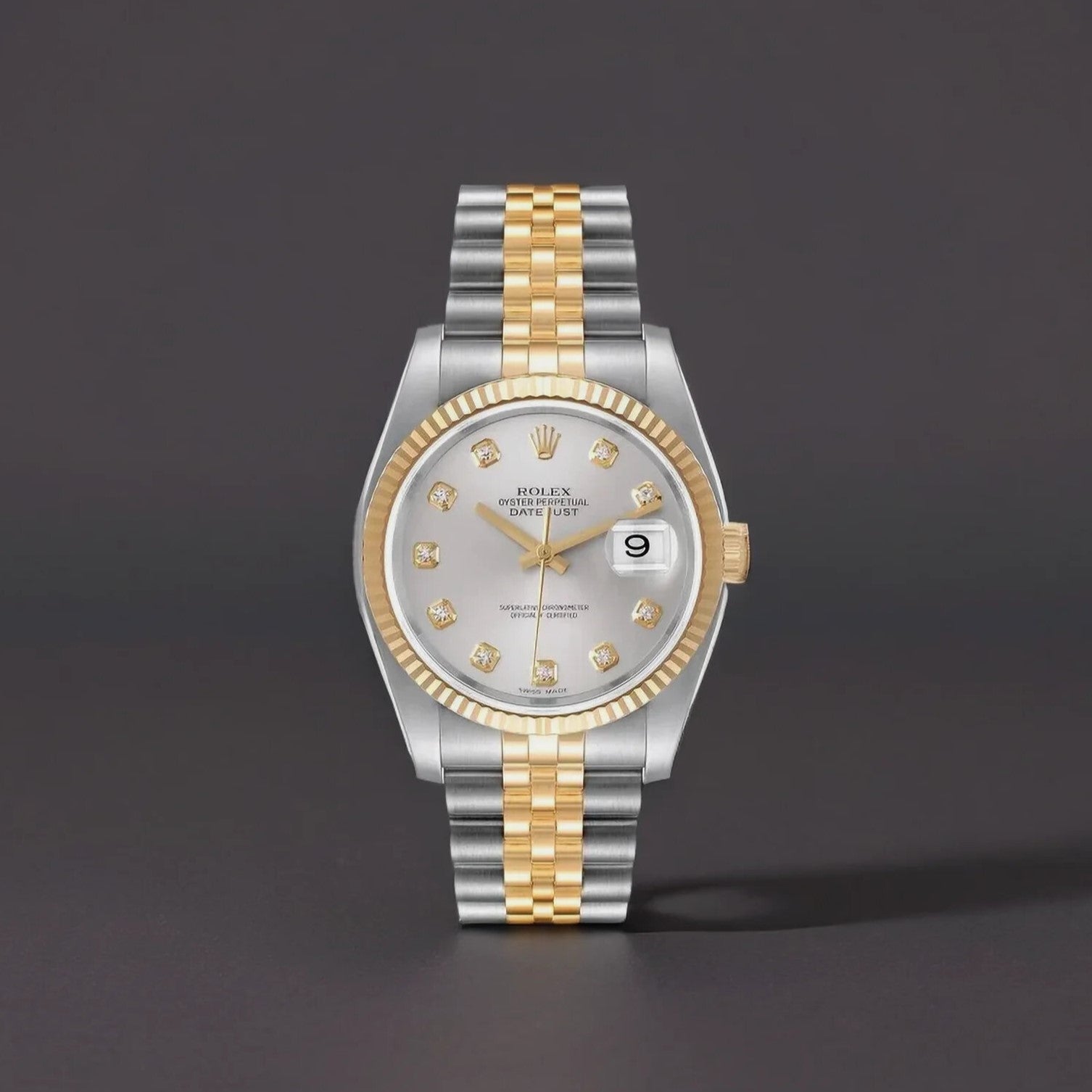 Rolex Datejust 36mm Steel Yellow Gold Slate Diamond Dial Watch