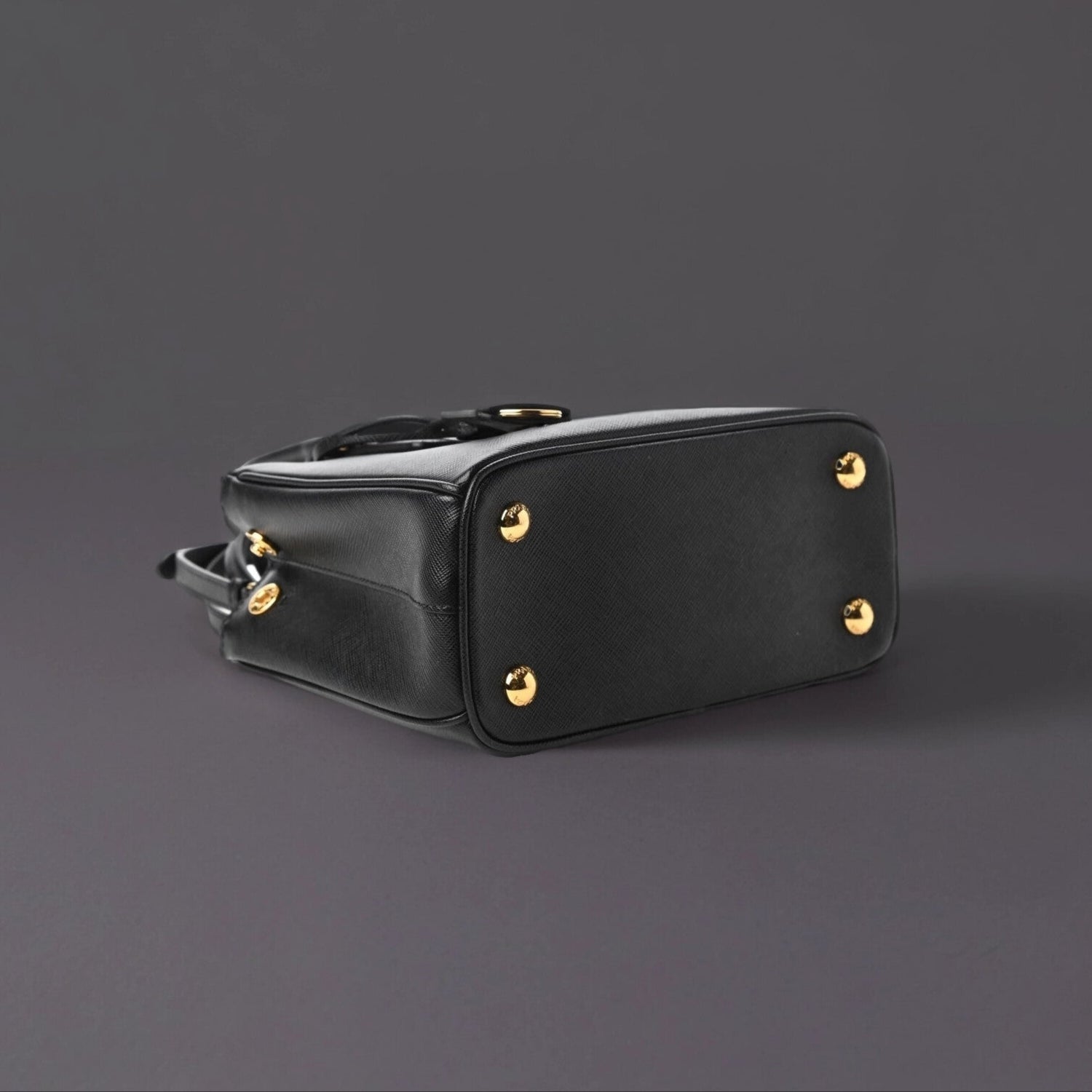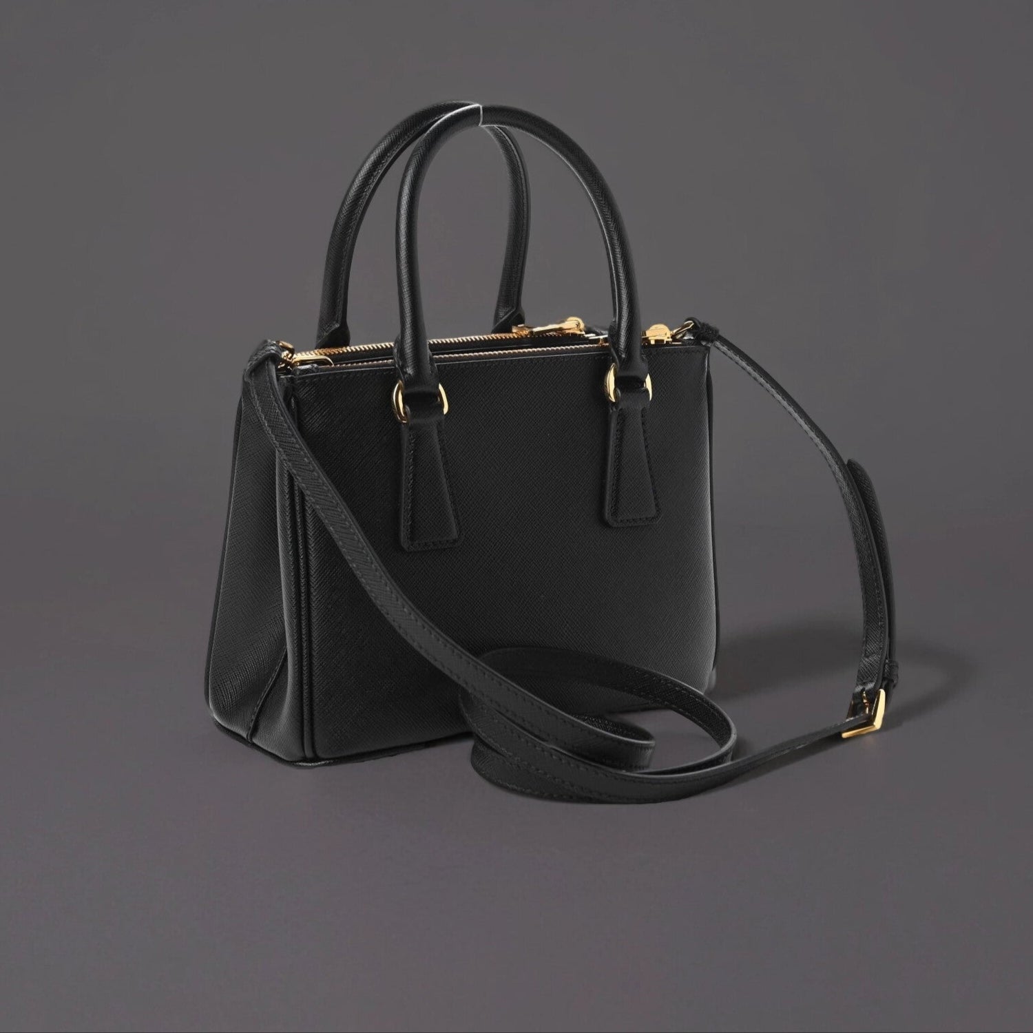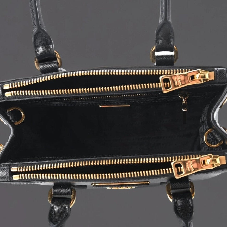 Saffiano Lux Mini Galleria Double Zip Tote Black
