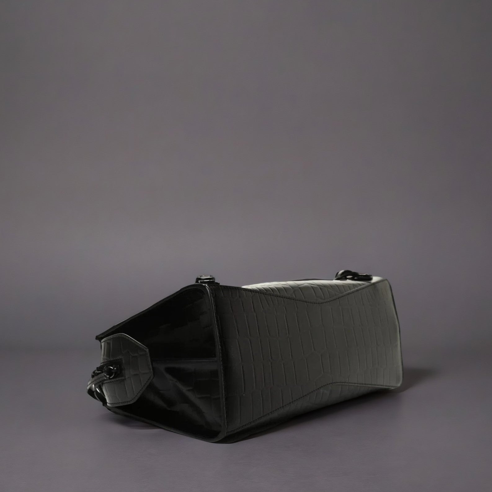Semi Shiny Calfskin Crocodile Embossed Neo Classic Black Hardware S City Black