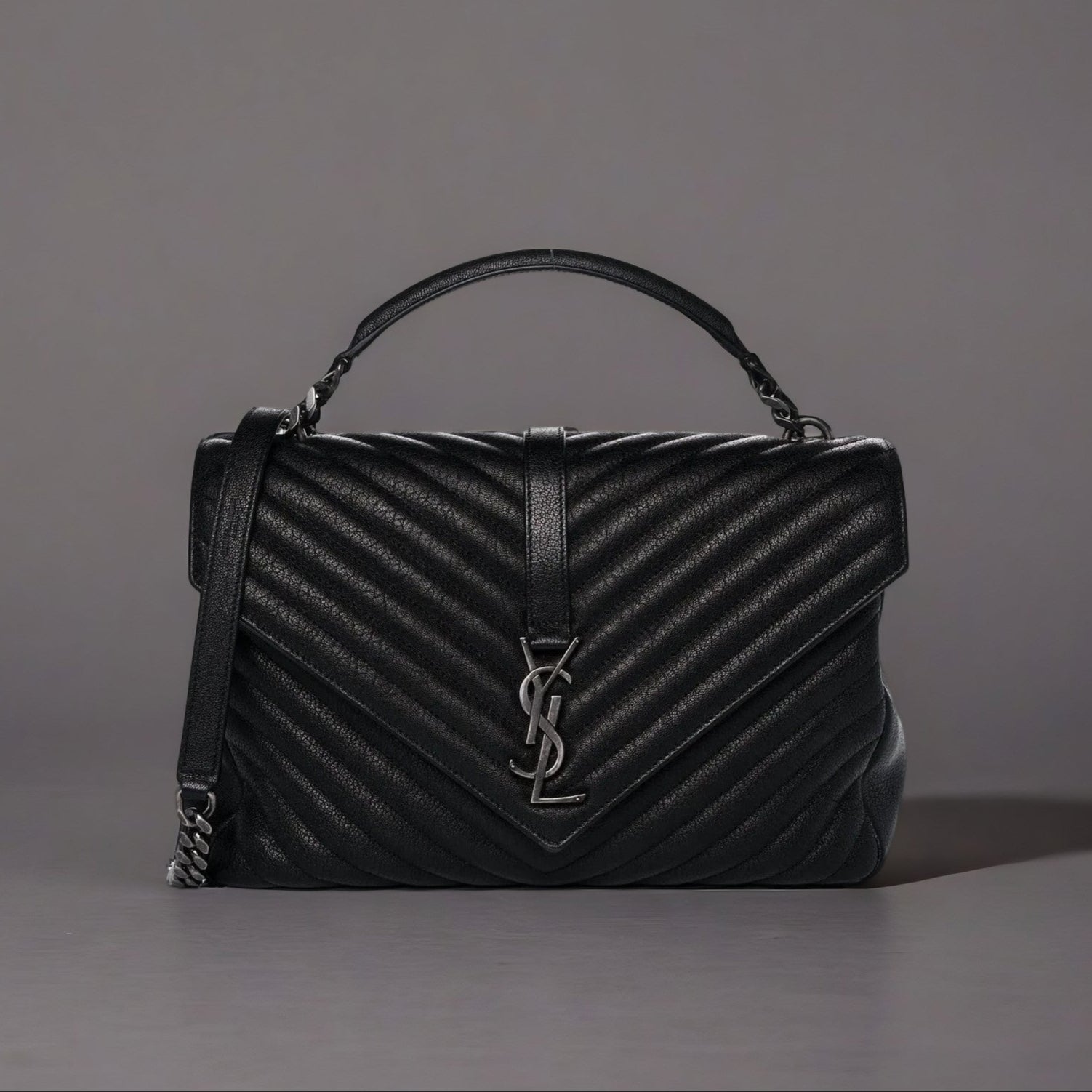 Sheepskin Matelasse Chevron Monogram Large College Satchel Black