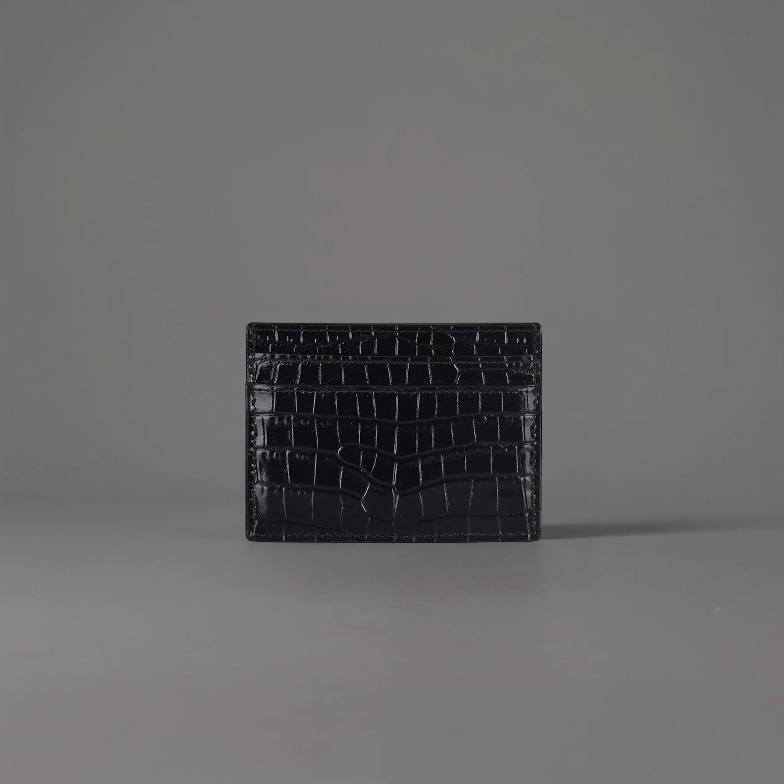 Shiny Calfskin Crocodile Embossed Monogram Cardholder