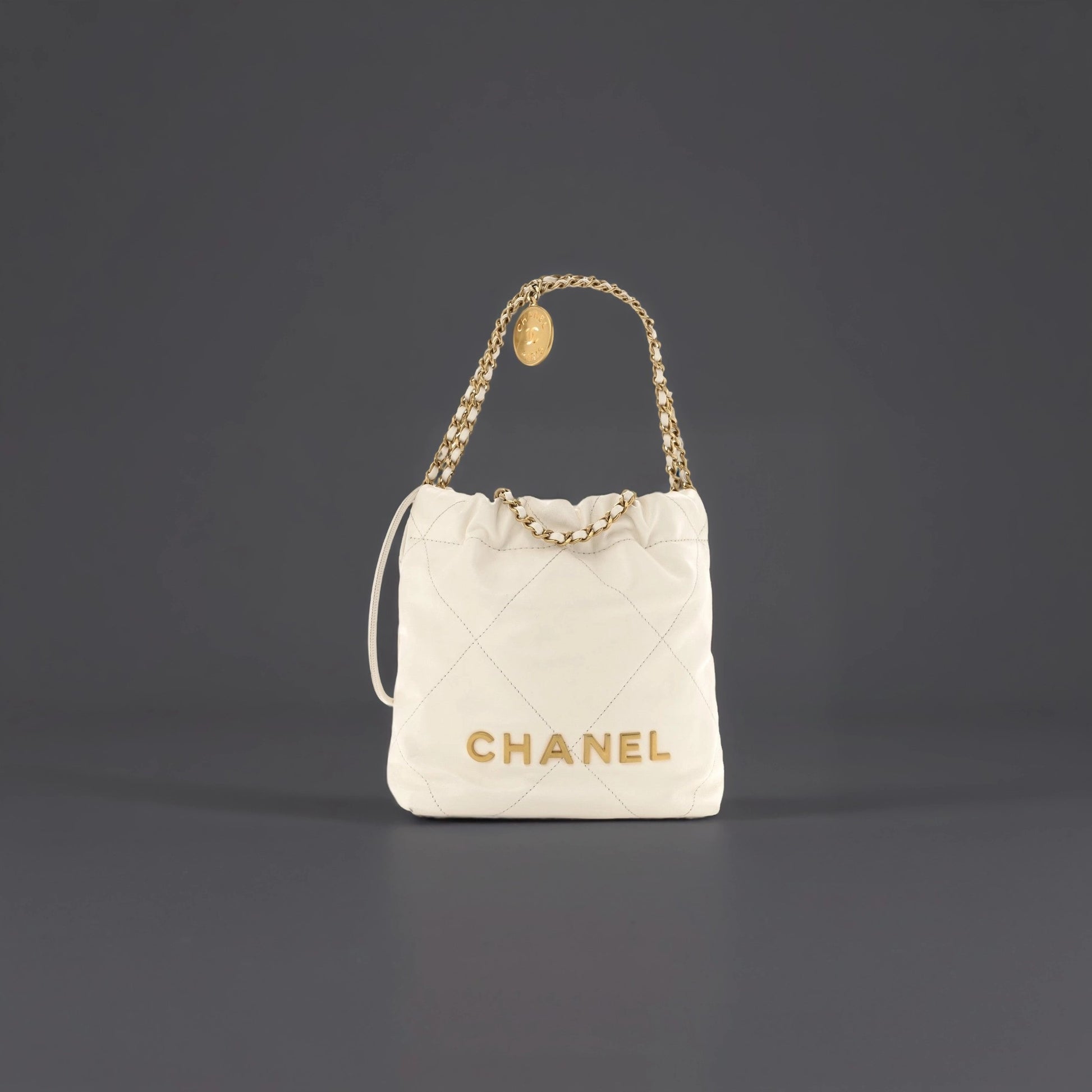 Shiny Calfskin Quilted Mini Chanel 22 White