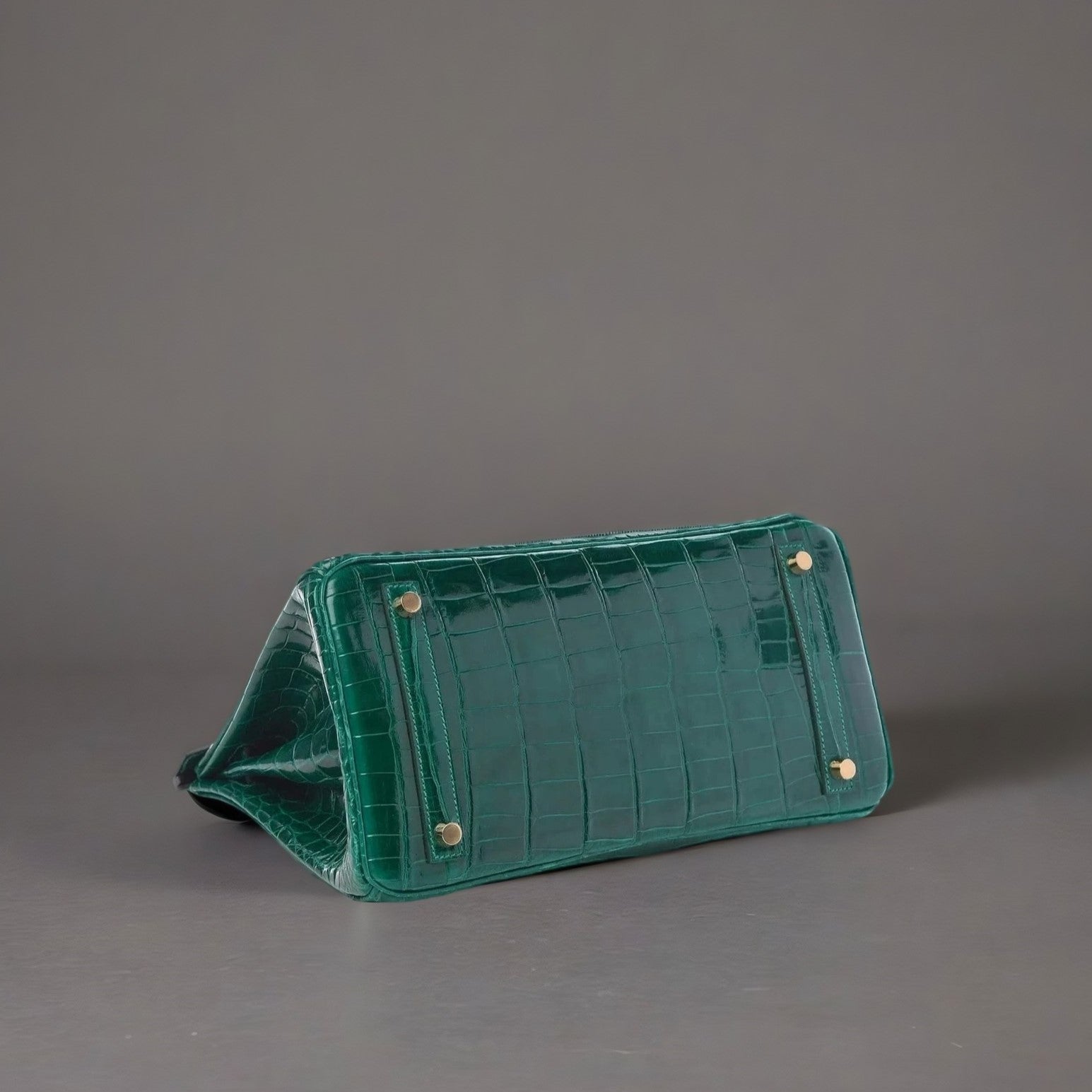 Shiny Niloticus Crocodile Horseshoe Birkin 30 Vert Emeraude Black