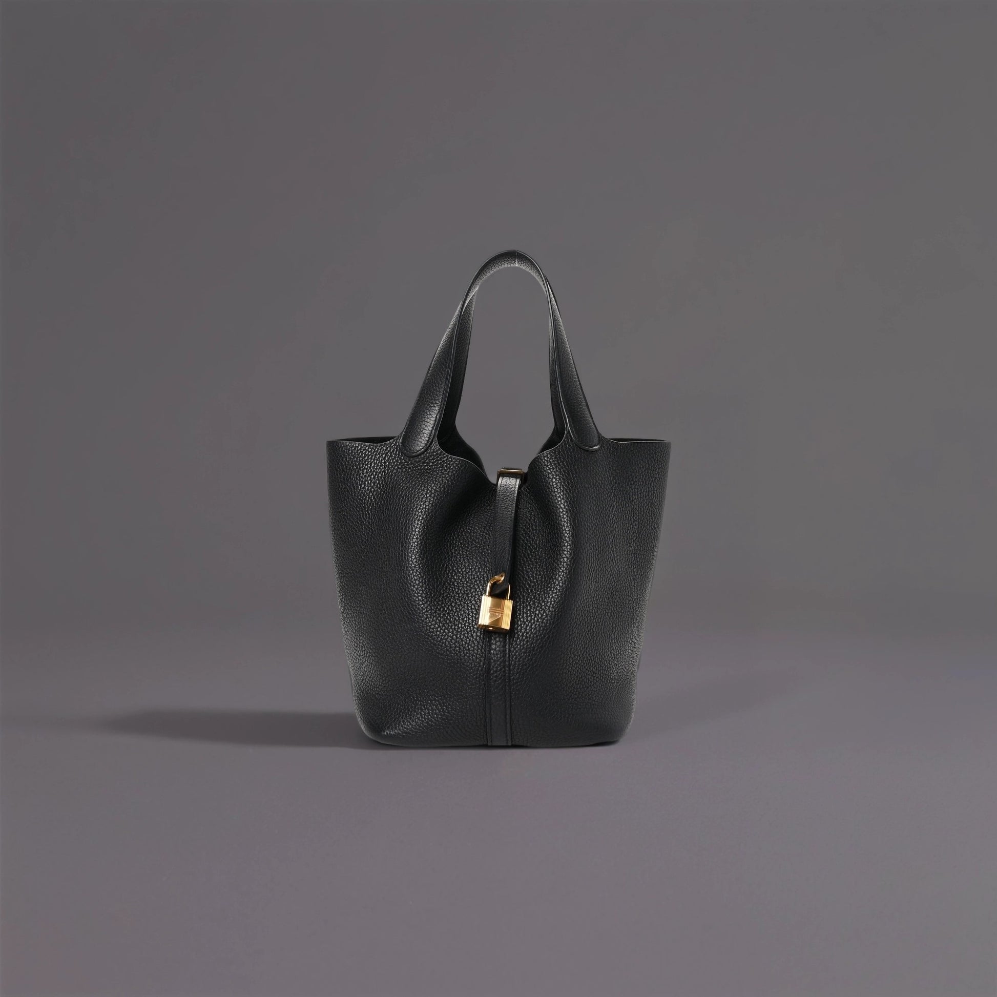 This is an authentic HERMES Taurillon Clemence Picotin Lock 22 MM in Black. This chic and lovely tote is crafted of luxuriously soft Clemence calfskin leather in black. The bag features looping leather top handles and gold plated hardware. The top strap opens to a spacious black suede interior.
