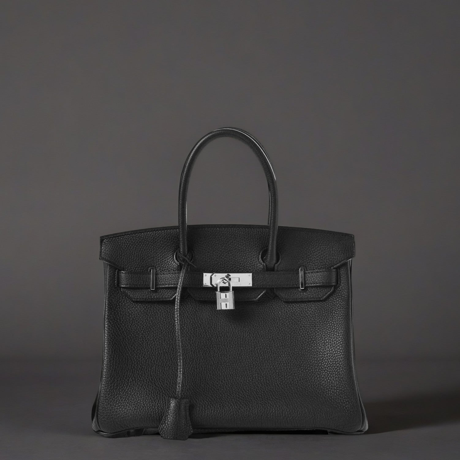 We guarantee this is an authentic HERMES Togo Birkin 30 Black .This chic handbag classic is crafted of luxurious togo calfskin leather in black. The bag features thin but sturdy rolled leather top handles, a cross over flap with a strap closure and a polished silver palladium plated turn lock, a padlock and keys. These open the bag to a spacious black leather interior with a zipper and patch pocket. This iconic handbag is ideal for day and evening use, only from Hermes.